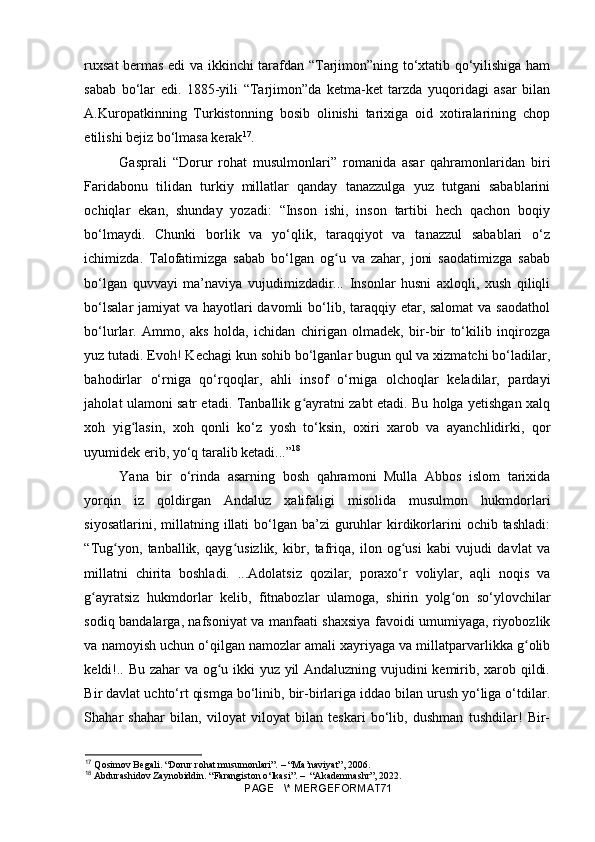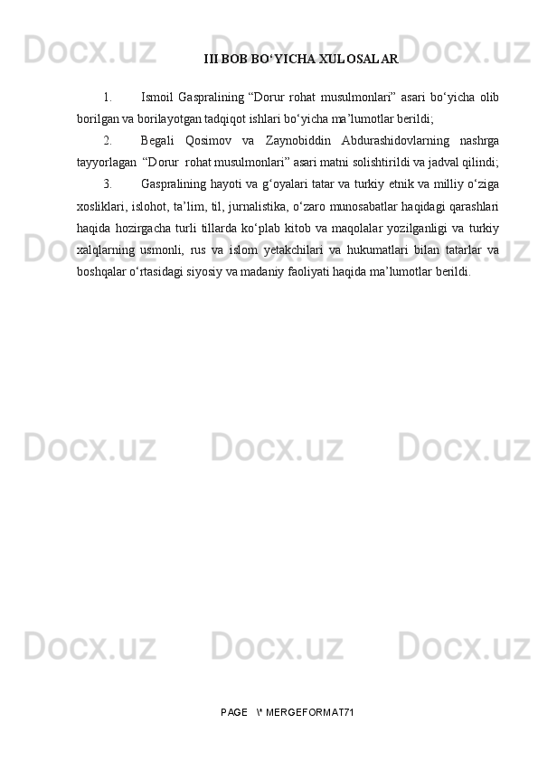 III. BOB. ISMOIL GASPRALINING “DORUR ROHAT MUSULMONLARI”ASARINING OBRAZLAR TIZIMI BO‘YICHA OLIB BORILAYOTGAN TADQIQOT ISHLARI VA BADIIY IFODASI ..…… ….40