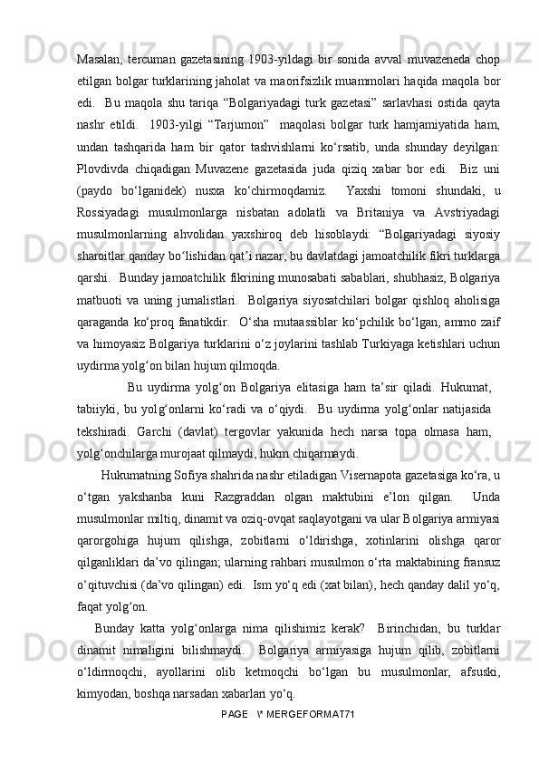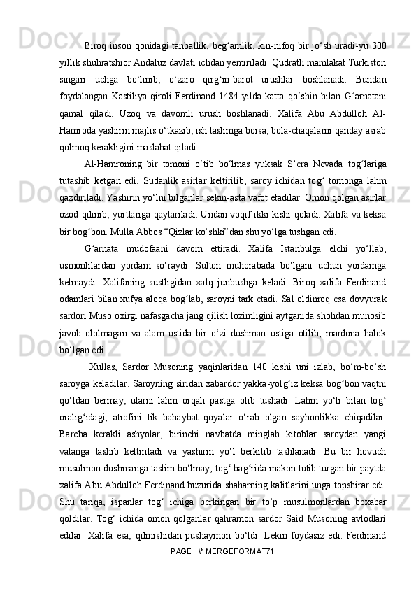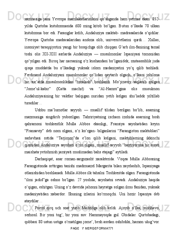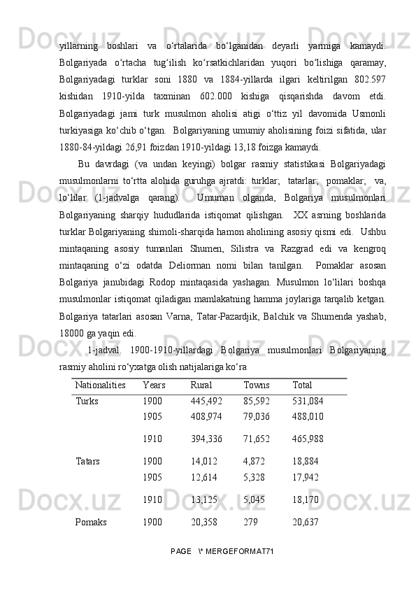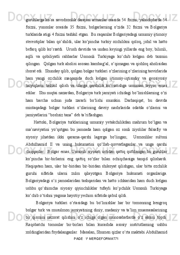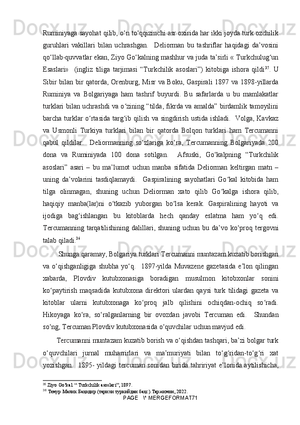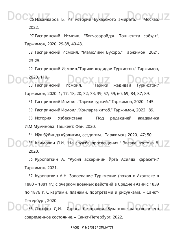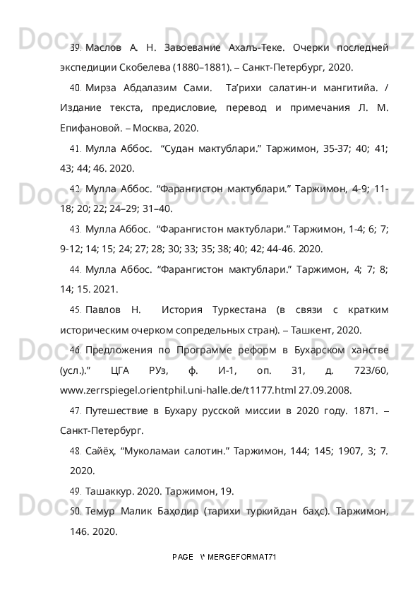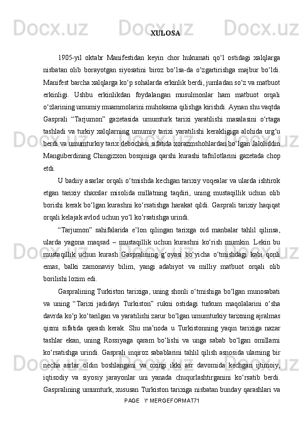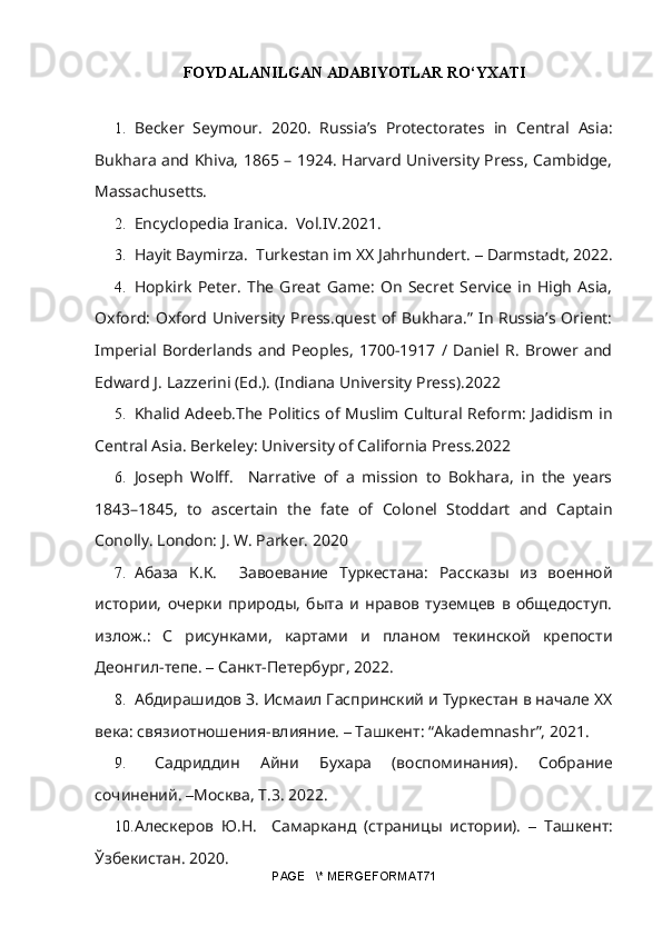 FOYDALANILGAN ADABIYOTLAR RO‘YXATI.……………………71