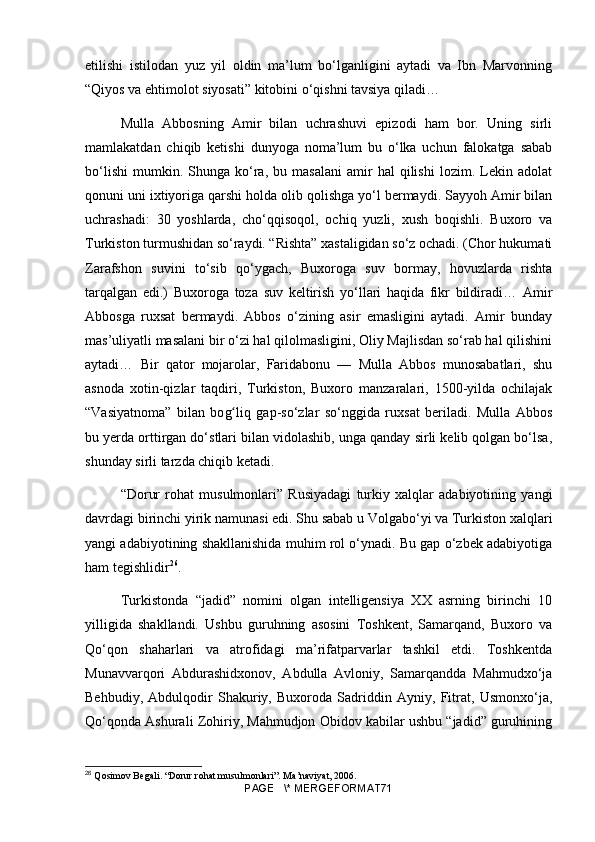 2.1. Ismoil Gaspralining “Dorur rohat musulmonlari” asarida qahramonlar tasnifi va uning mohiyati.……………………………………………………..…..24