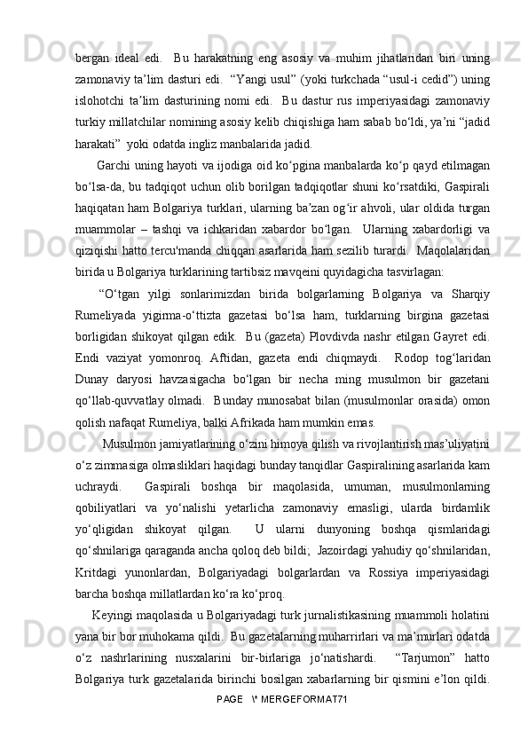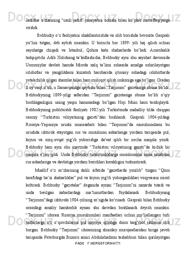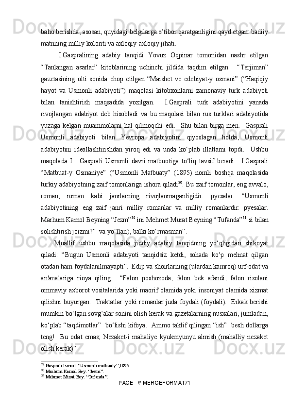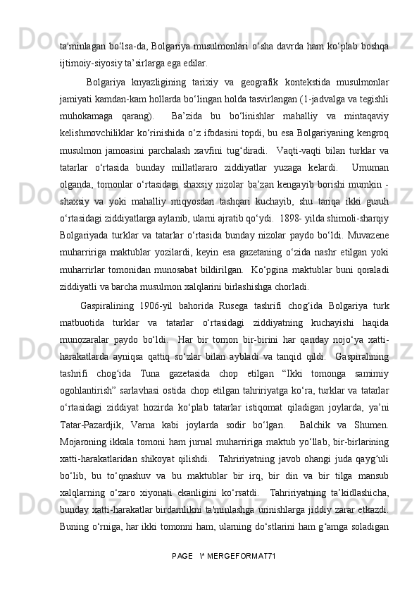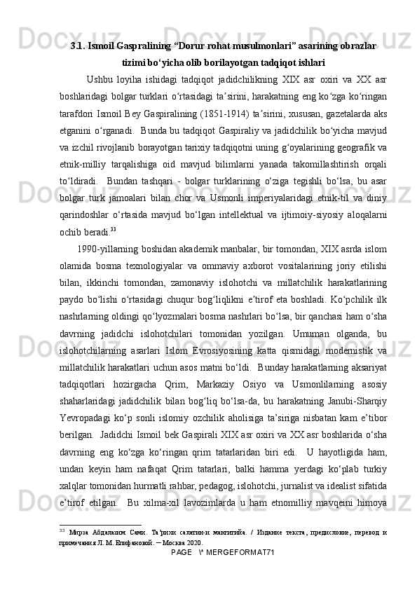 3.1. Ismoil Gaspralining “Dorur rohat musulmonlari” asarining obrazlar tizimi bo‘yicha olib borilayotgan tadqiqot ishlari.…..……………..…………………….40