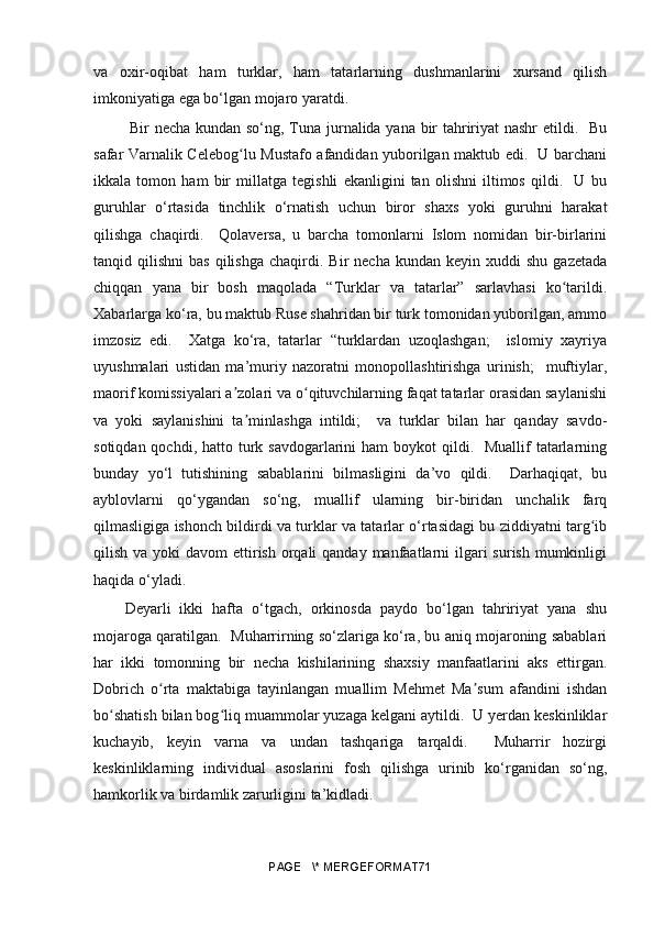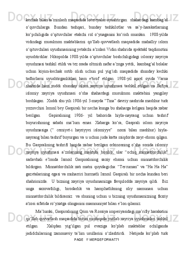 2.2. Ismoil Gaspralining “Dorur rohat musulmonlari” asarining obrazlar tahlili.…………………………………………………………….………….…….36