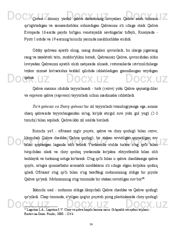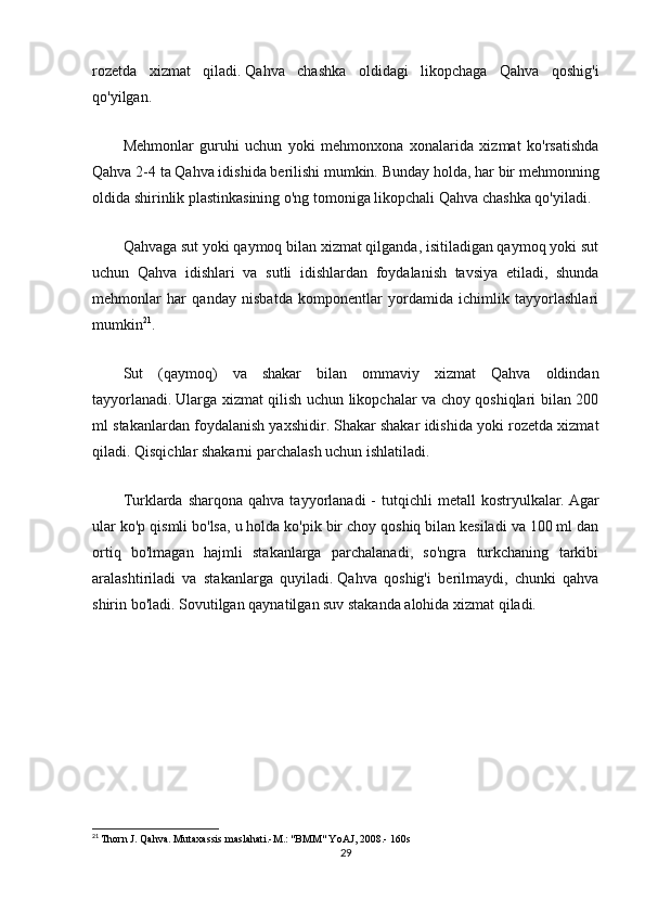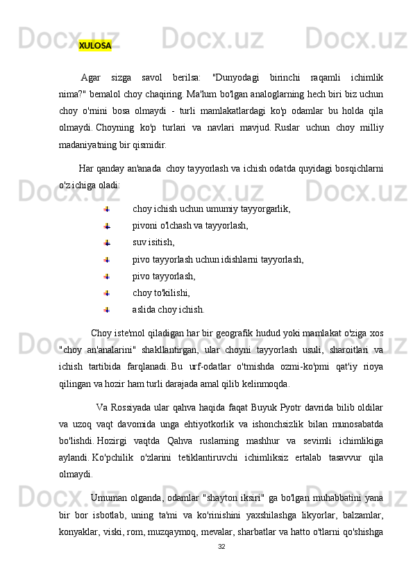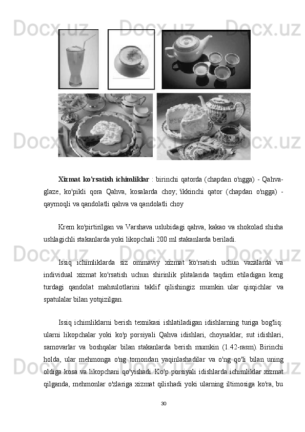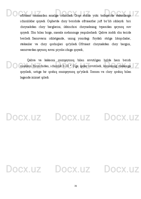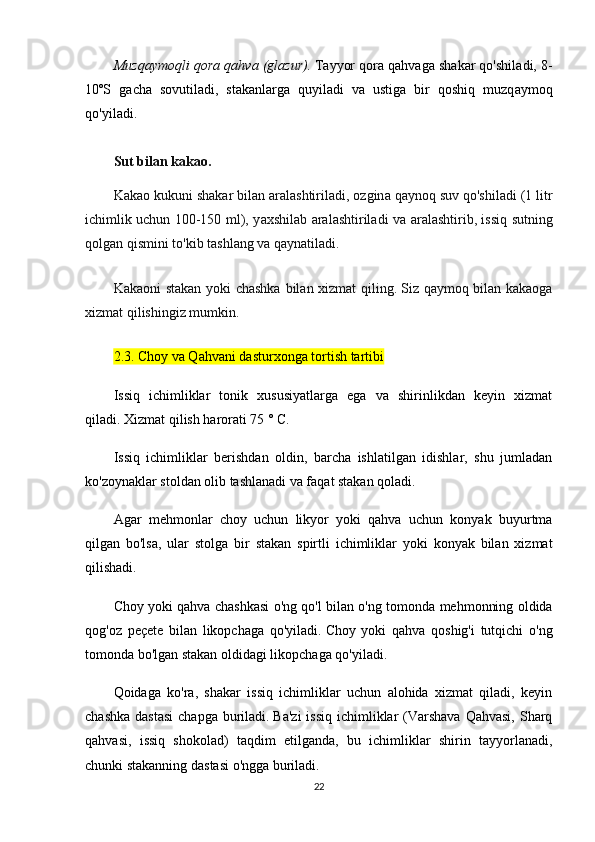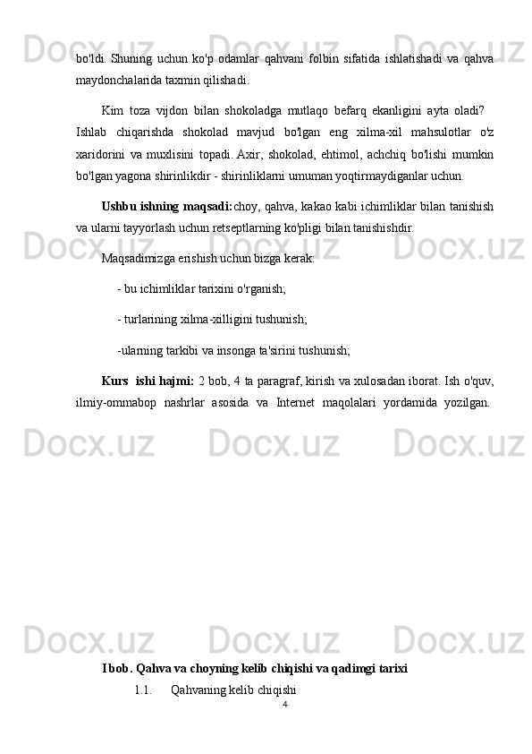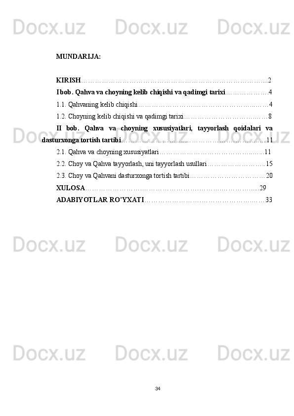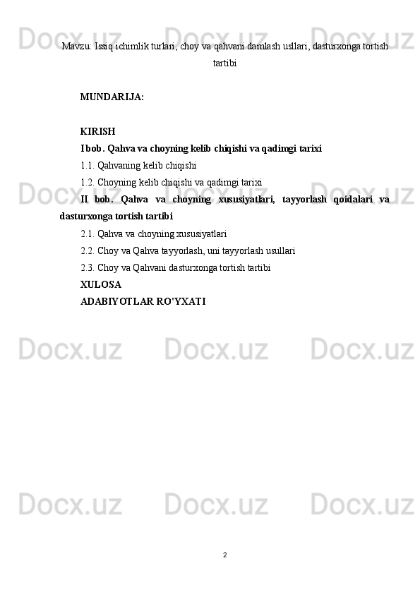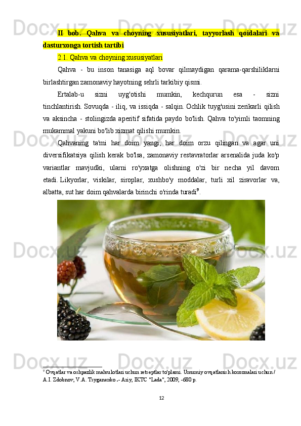 II bоb. Qаhvа vа chоyning xususiyаtlаri, tаyyоrlаsh qоidаlаri vа dаsturxоngа tоrtish tаrtibi