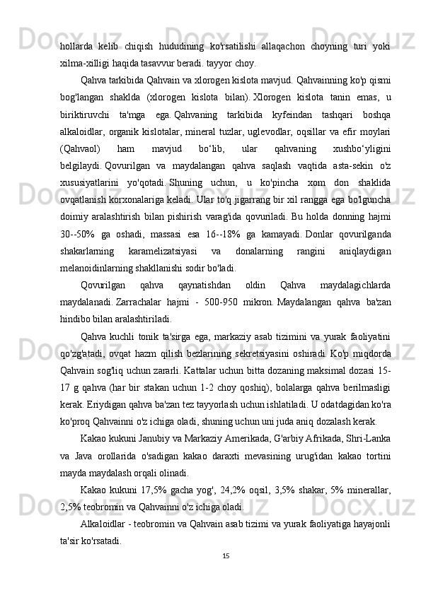 2.1. Qаhvа vа chоyning xususiyаtlаri