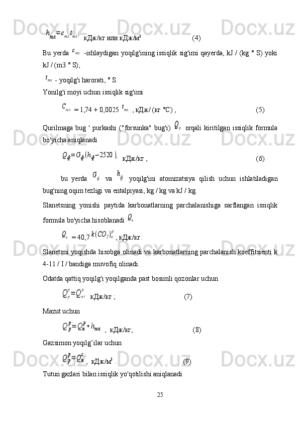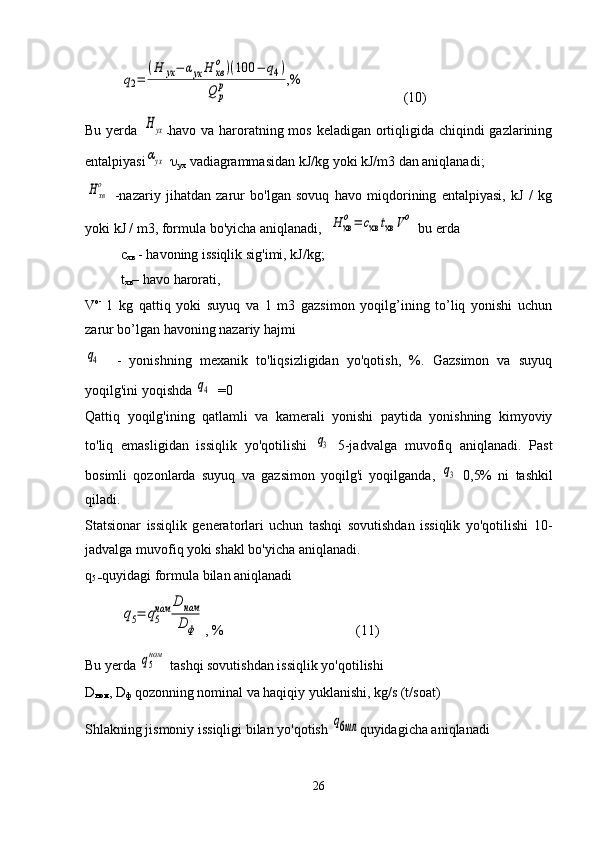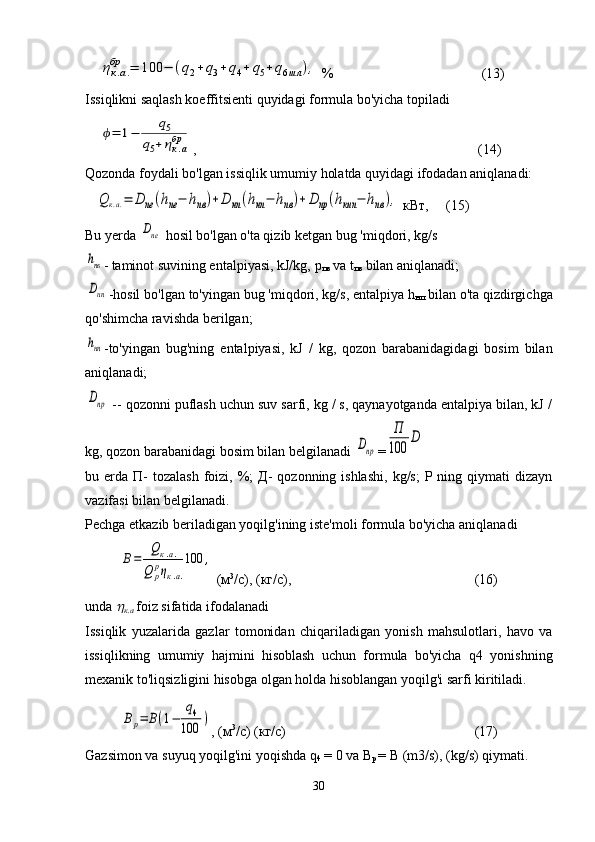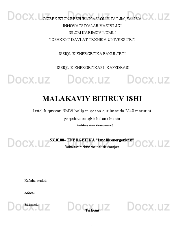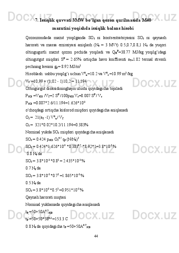 Issiqlik quvvati 3MW bo’lgan qozon qurilmasida M40 mazutini yoqishda issiqlik balans hisobi