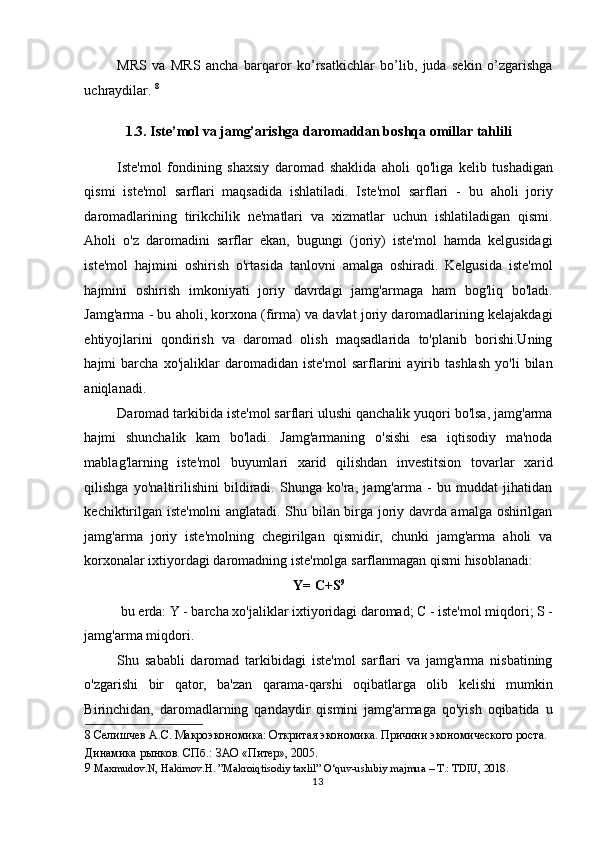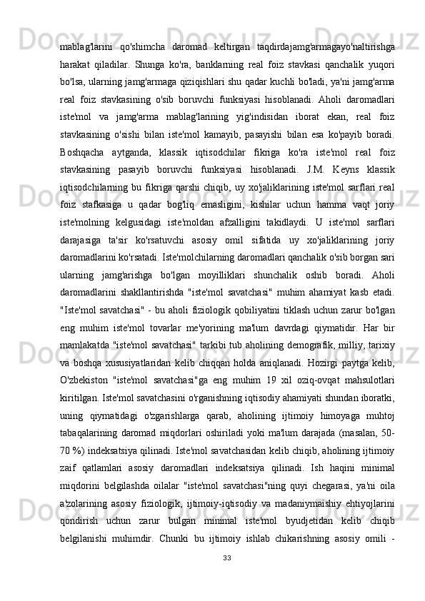 Iste'mol va jamg'arish funksiyalari va ularga ta'sir etuvchi omillar