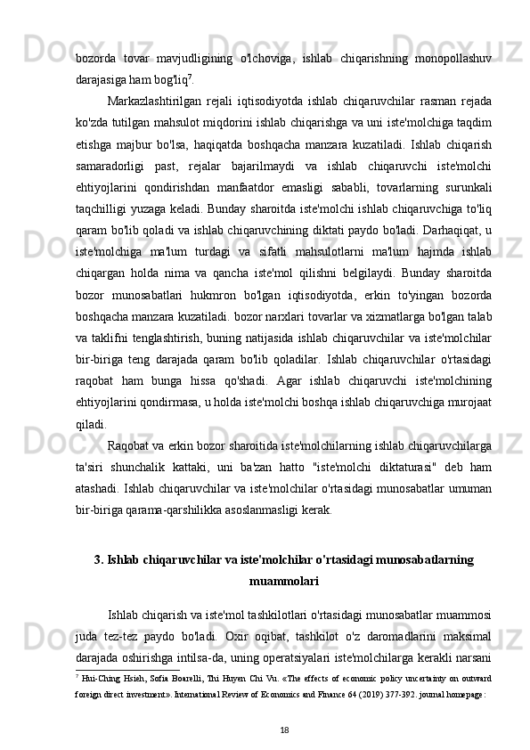 3. Ishlab chiqaruvchilar va iste'molchilar o'rtasidagi munosabatlarning muammolari 18