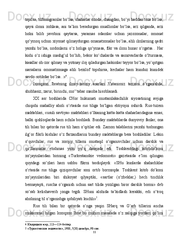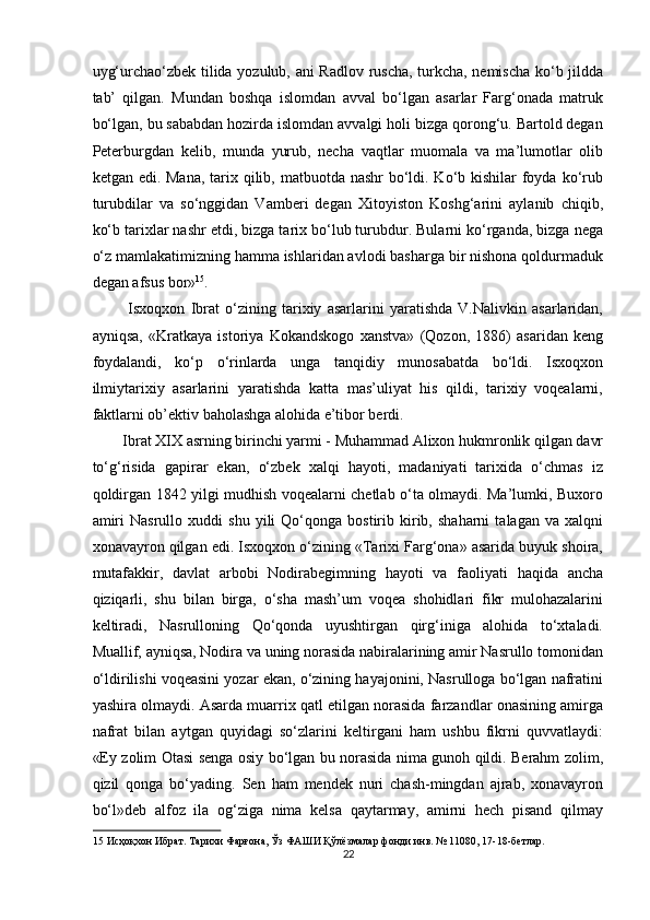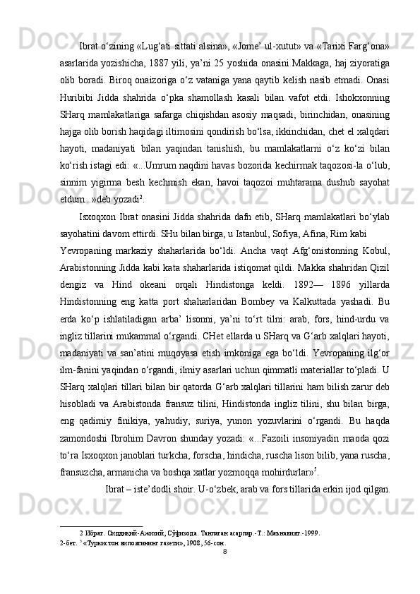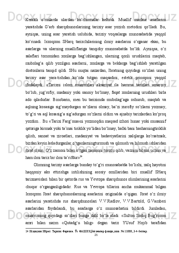 Isxoqxon Ibrat hаyoti vа fаоliyati tаriхshunоsligi