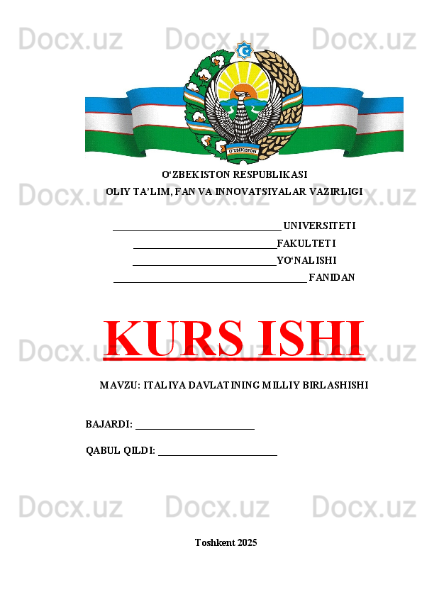ITALIYA DAVLATINING MILLIY BIRLASHISHI