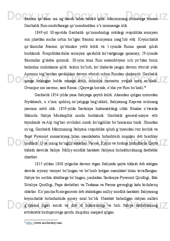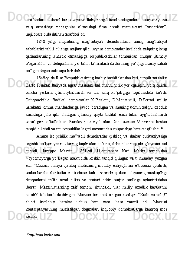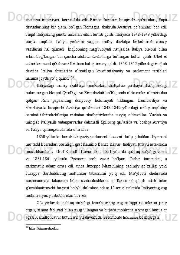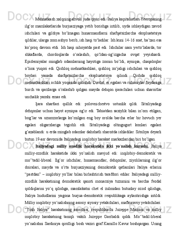 1.2. Qayta tiklash davrida Italiya. Milliy-ozodlik harakati Italiyani birlashtirishning dastlabki shartlari......................................................................................................8