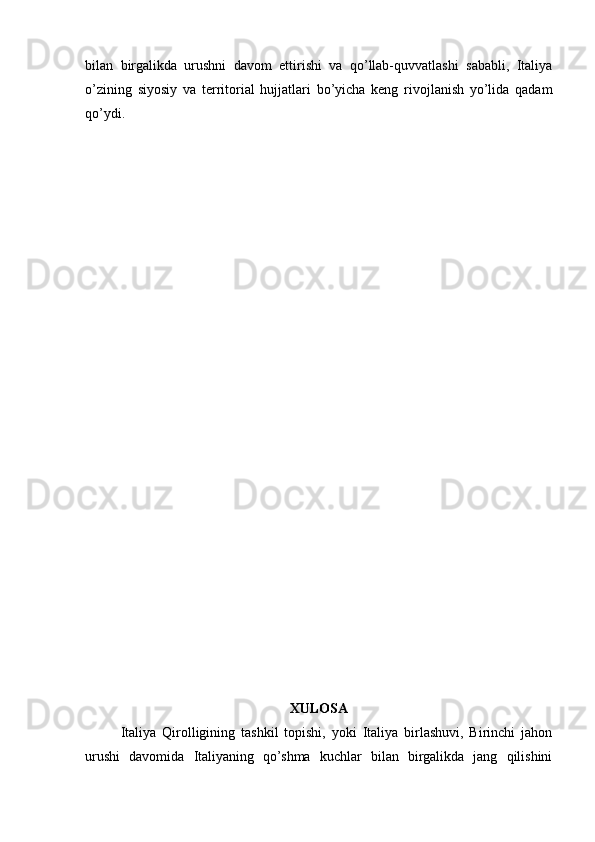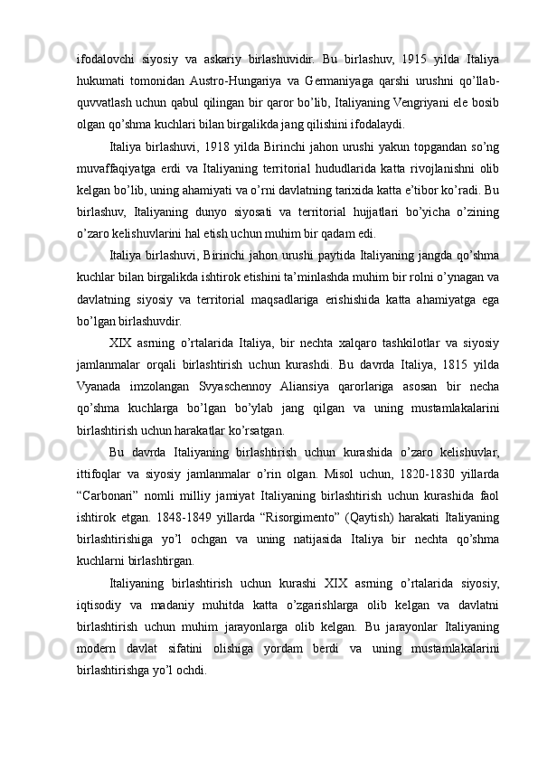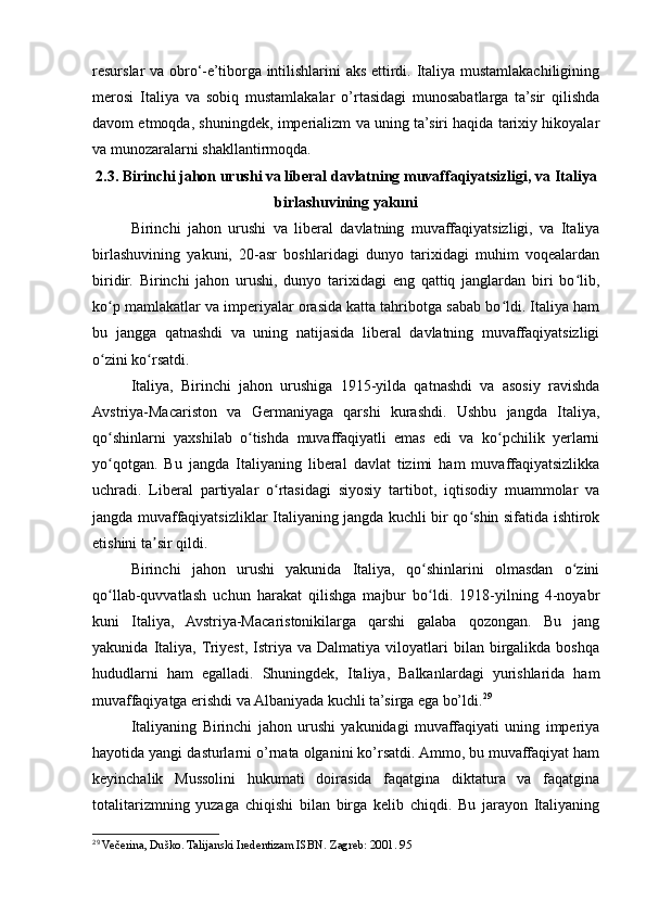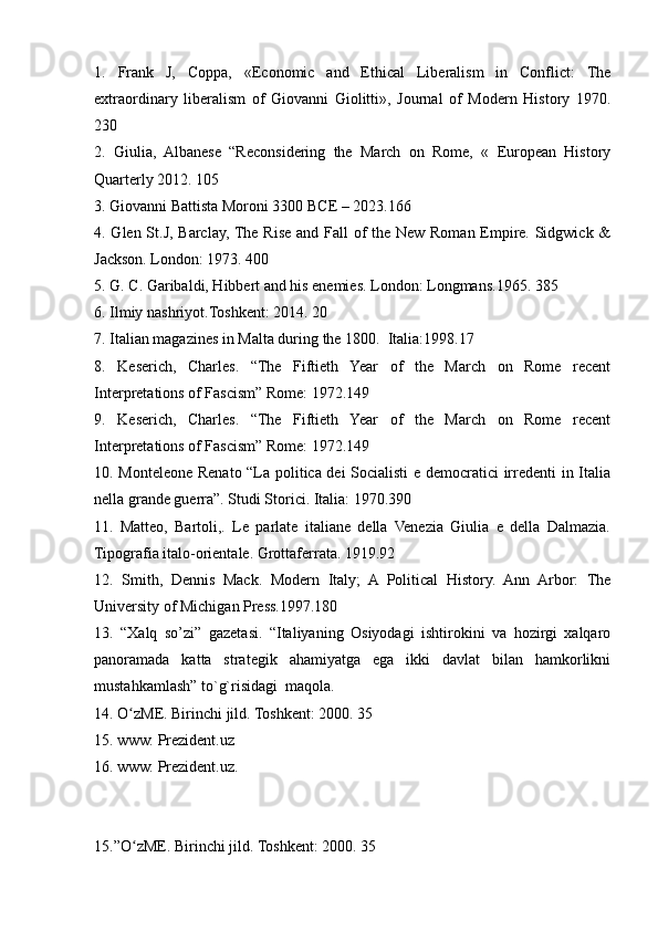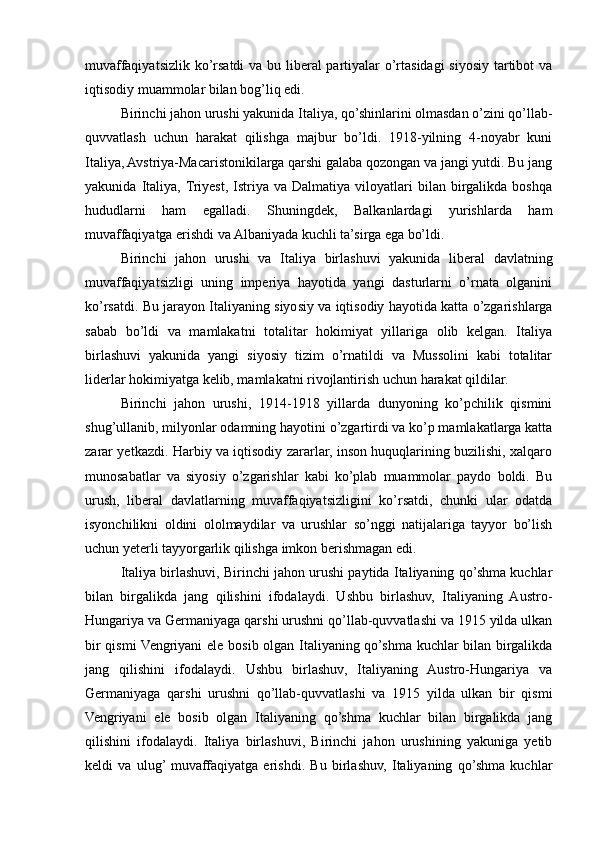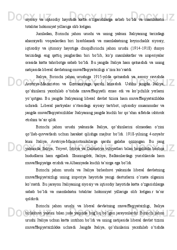 2.3. Birinchi jahon urushi va liberal davlatning muvaffaqiyatsizligi, va Italiya birlashuvining yakuni..............................................................................................36