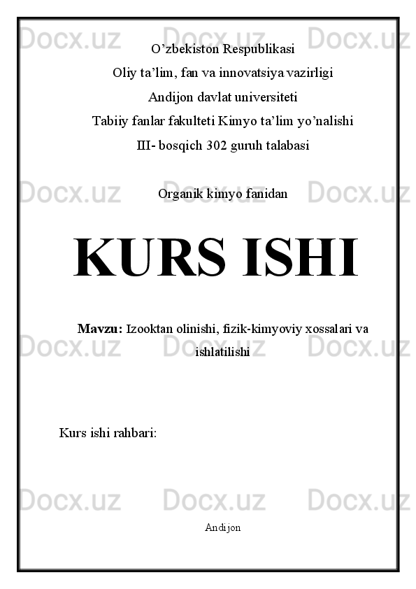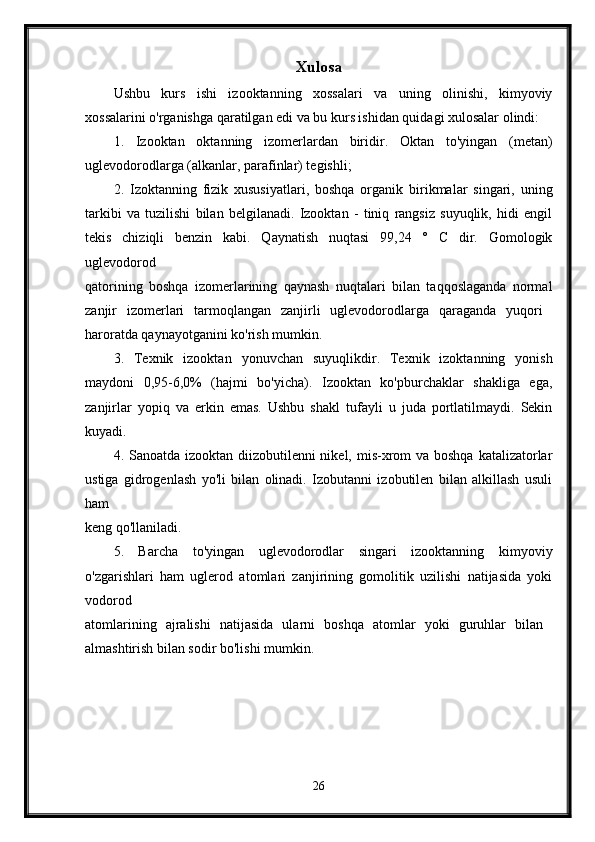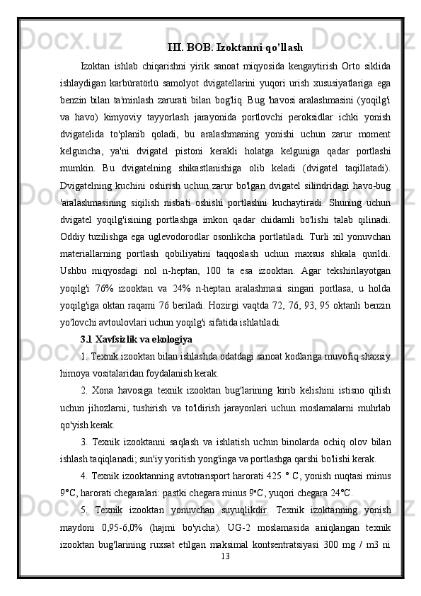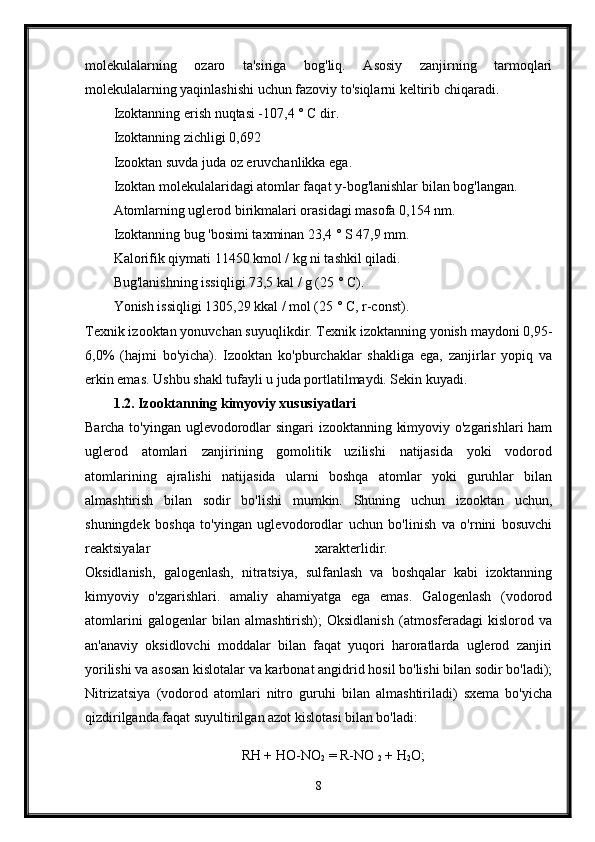 Izooktan olinishi, fizik-kimyoviy xossalari va ishlatilishi