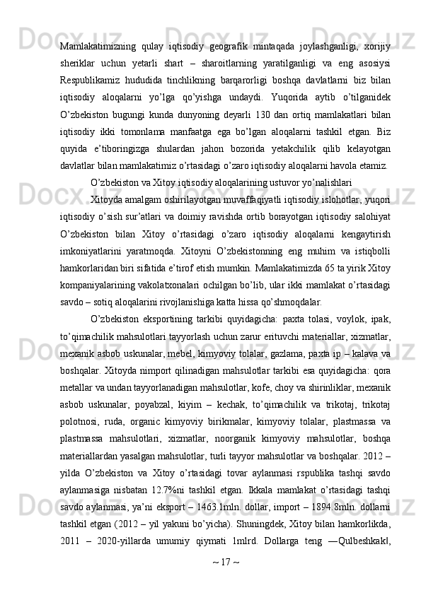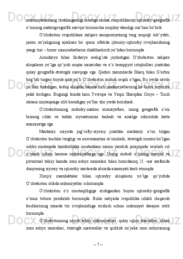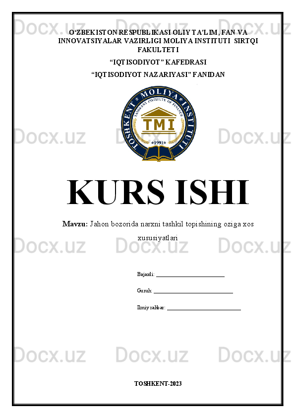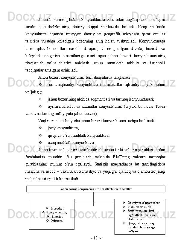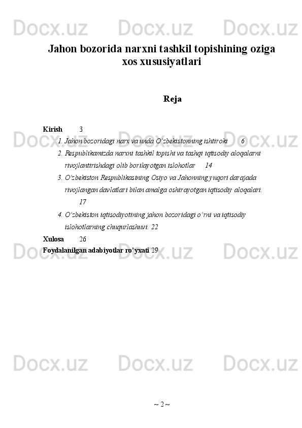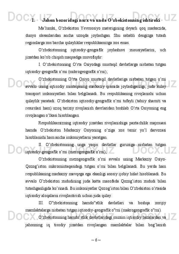 Jahon bozorida narxni tashkil topishining oziga xos xususiyatlari
