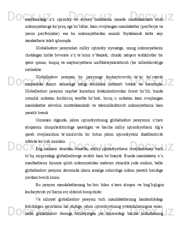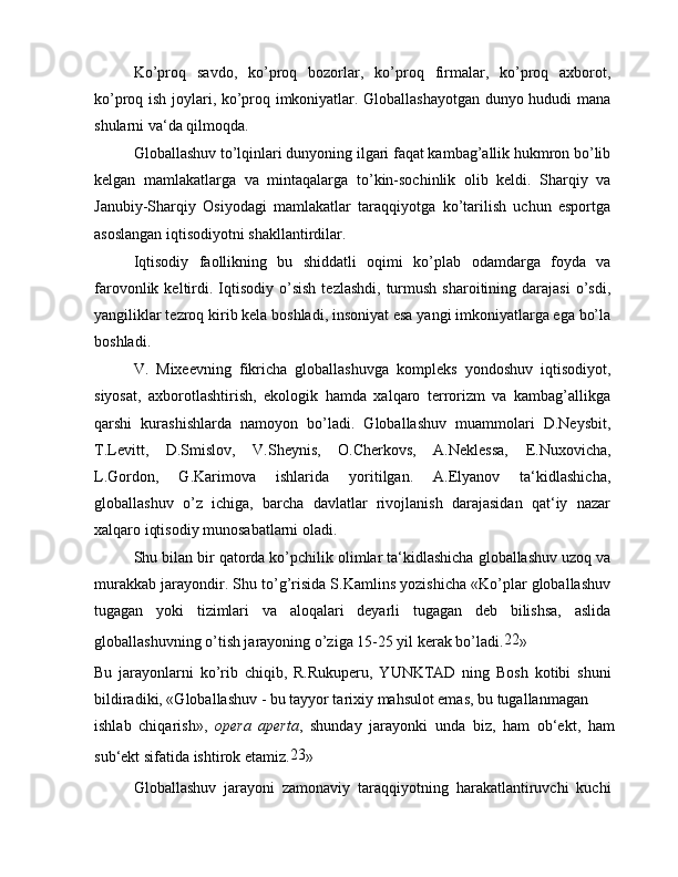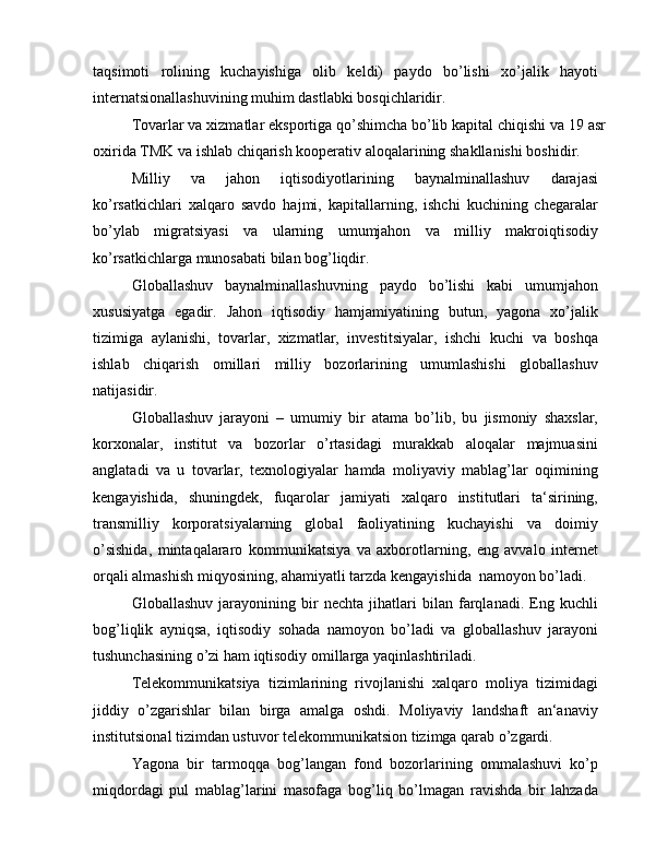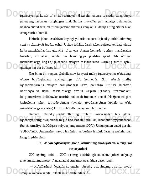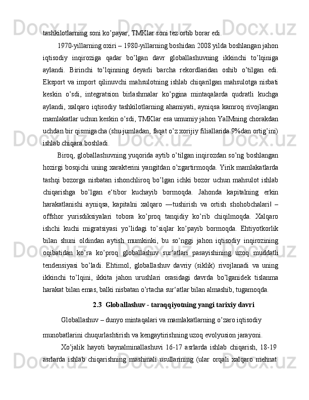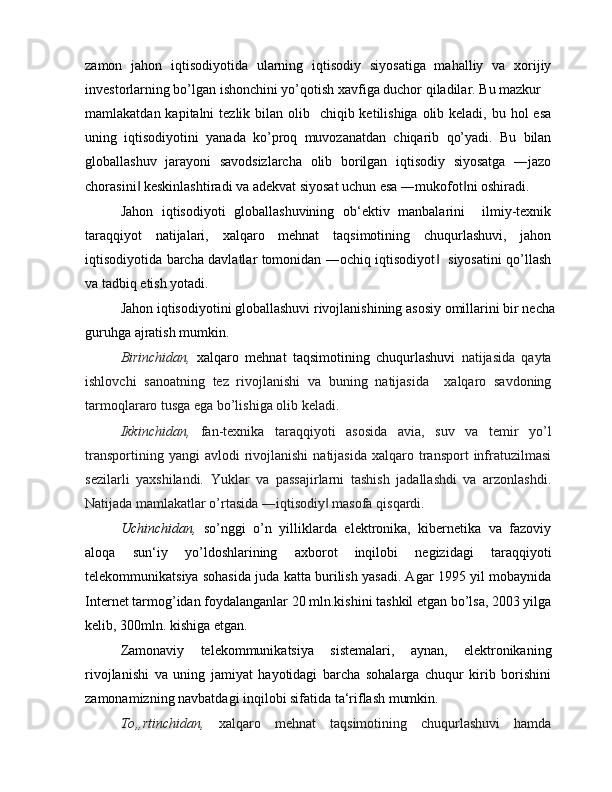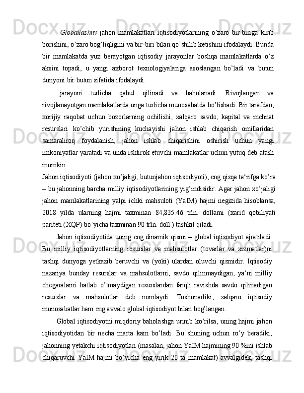 Jahon iqtisodiyoti globallashuvi ko’rsatgichlari