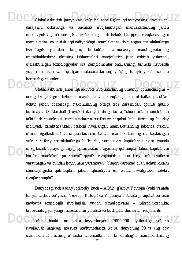 Jahon iqtisodiyoti globallashuvi, uni harakatlantiruvchi kuchlar va omillar