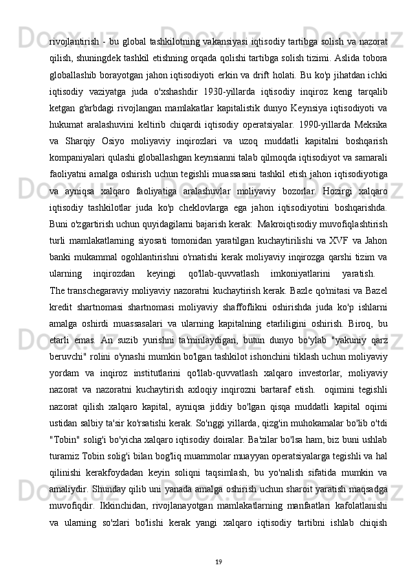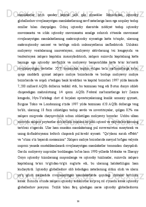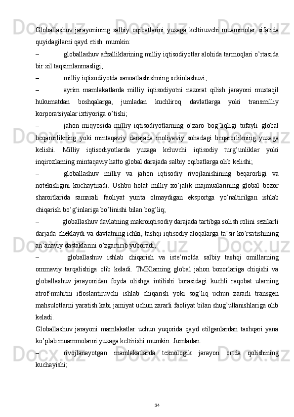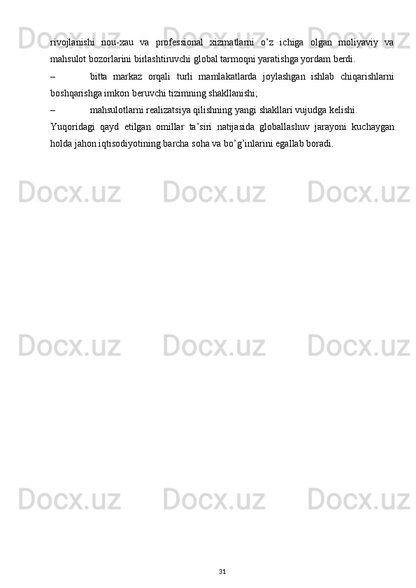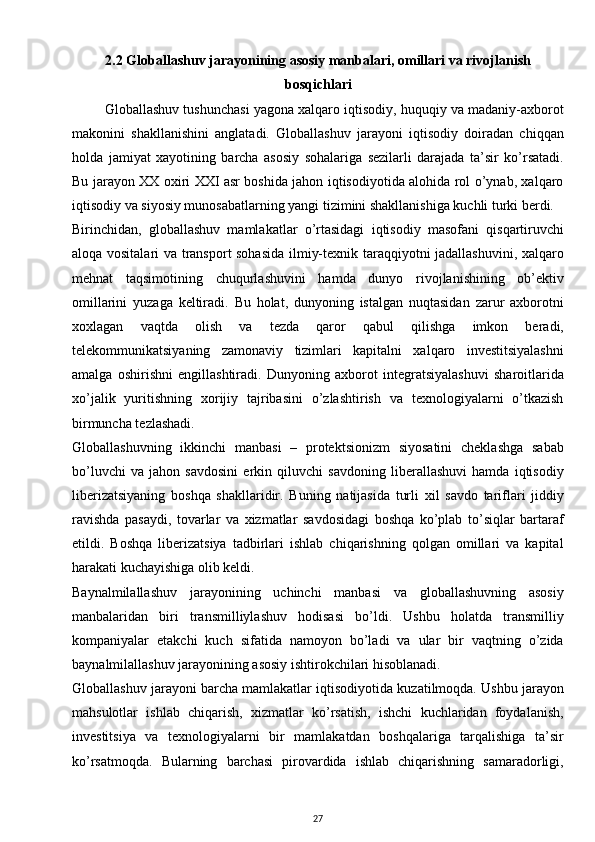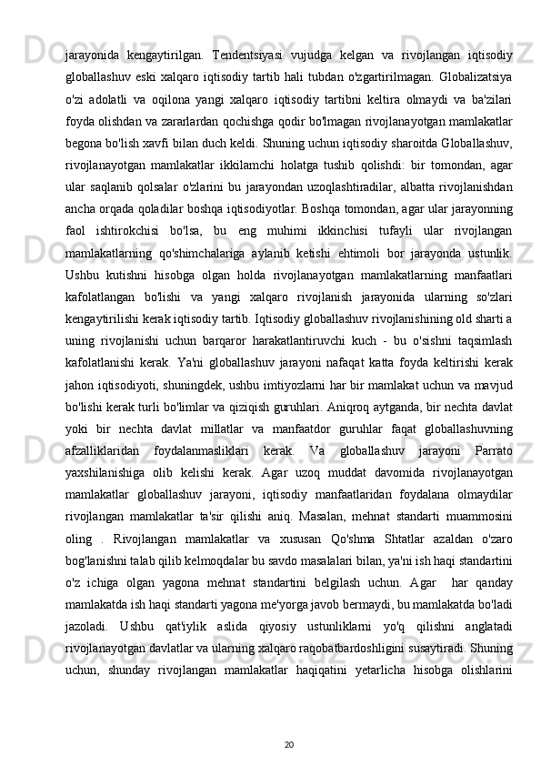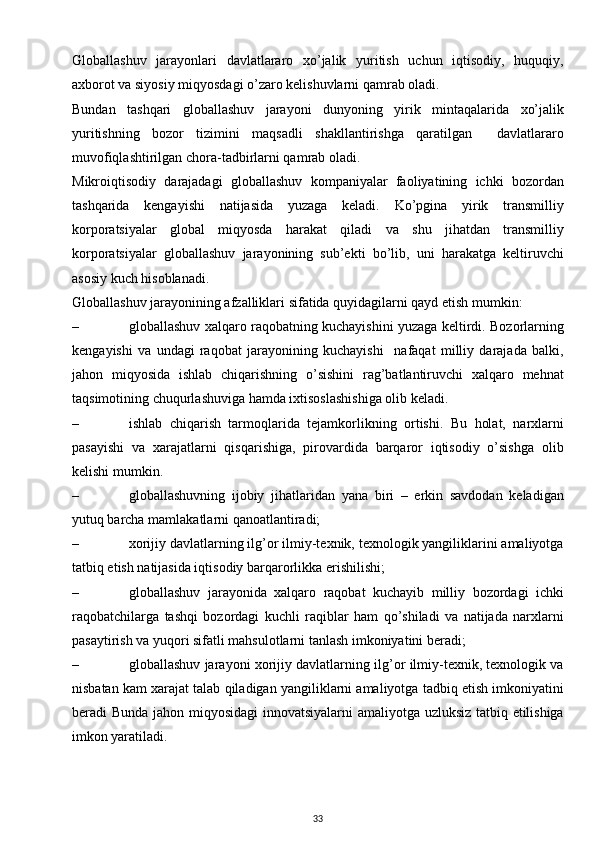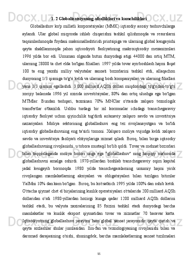 Jahon iqtisodiyotining globallashuvi afzalliklari