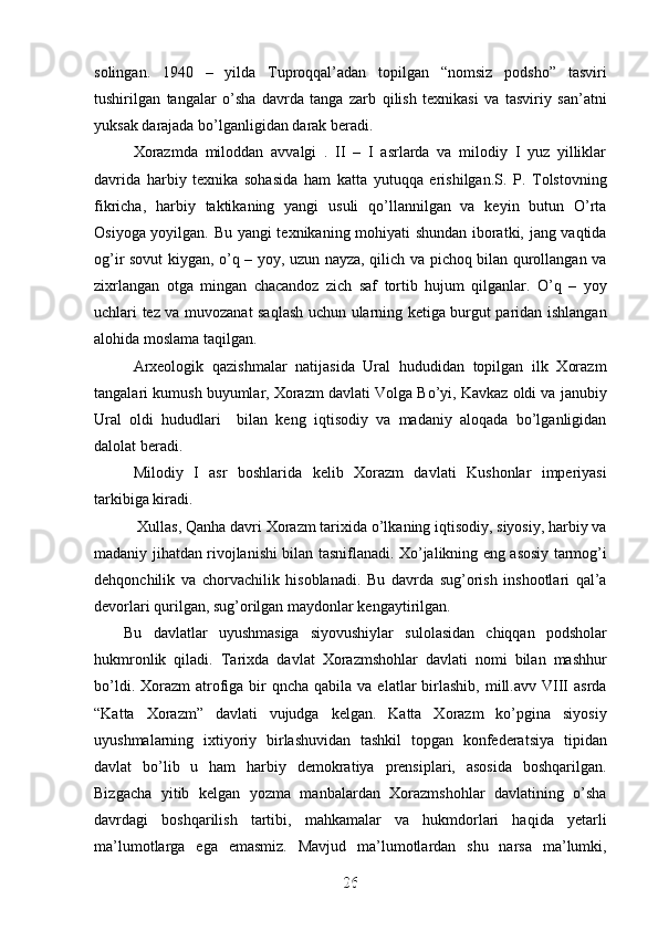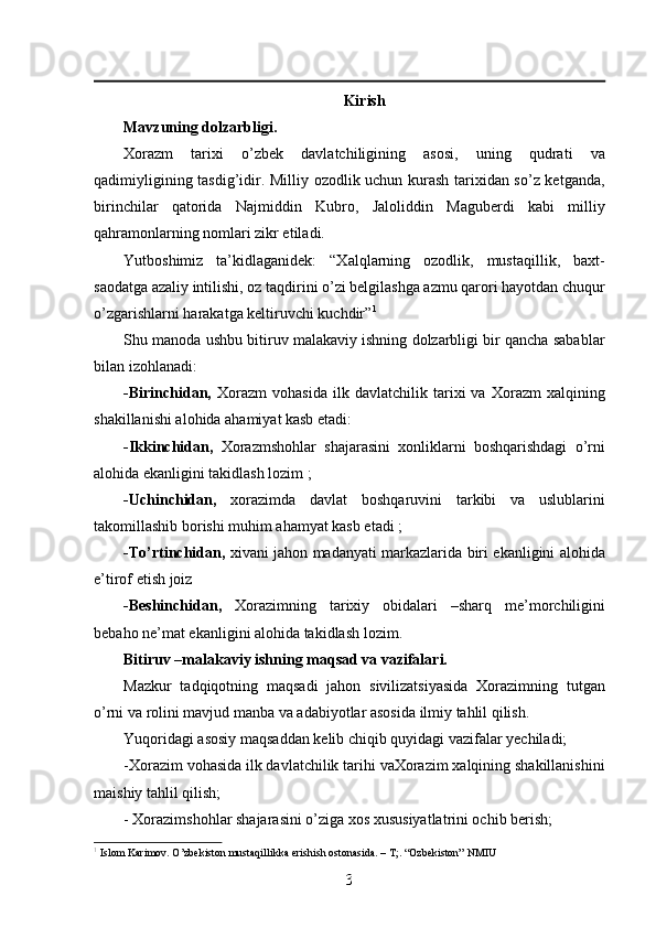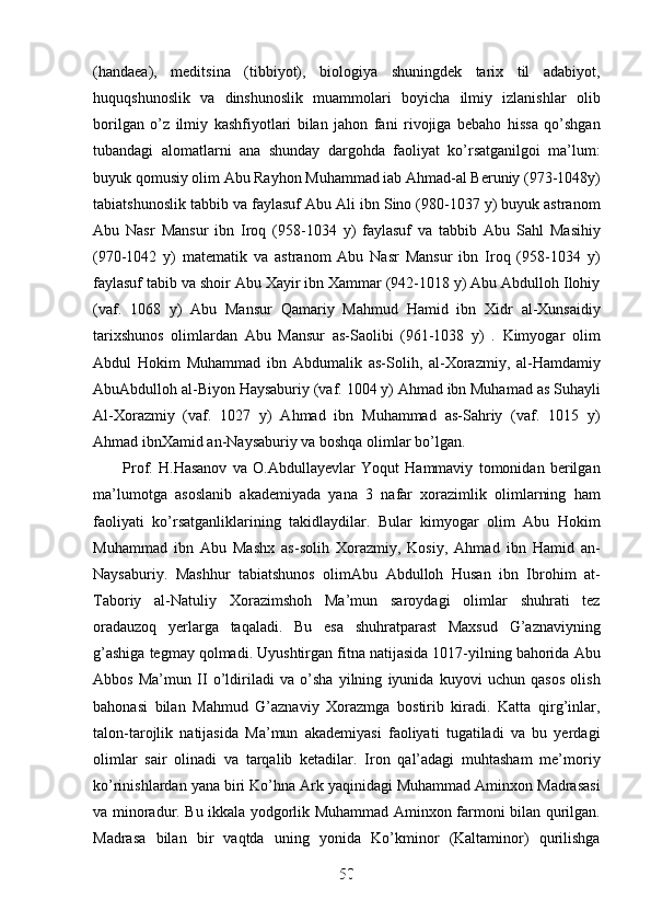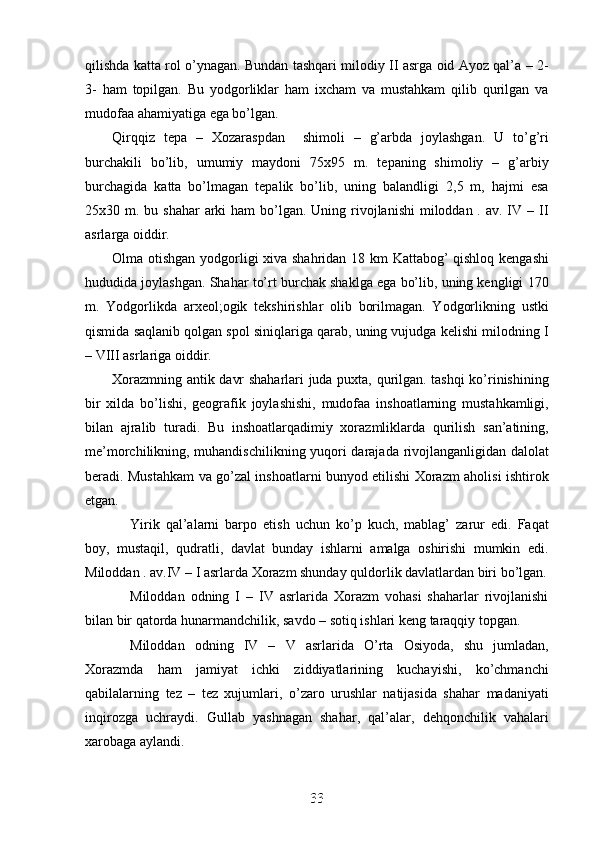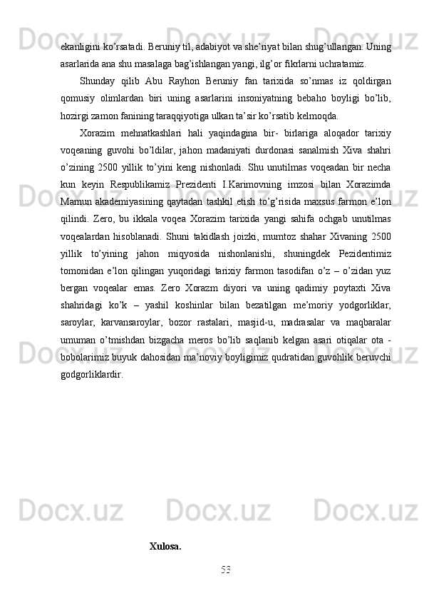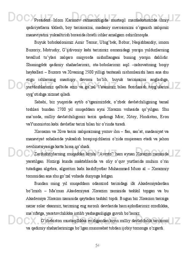 Jahon sivilizasiyasida Xorazmning tutgan o’rni va roli