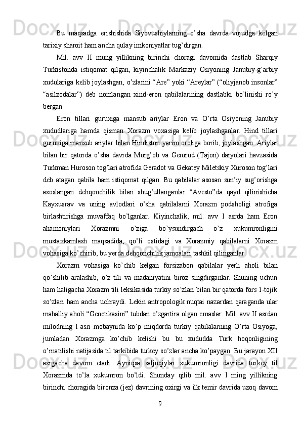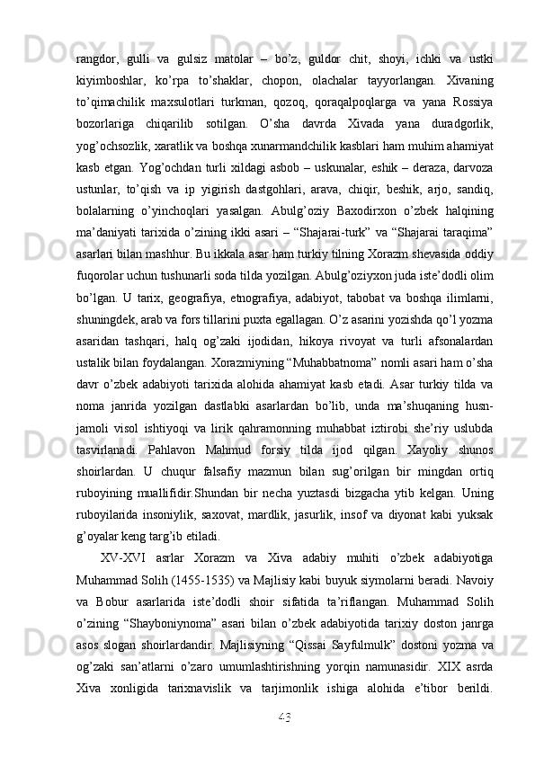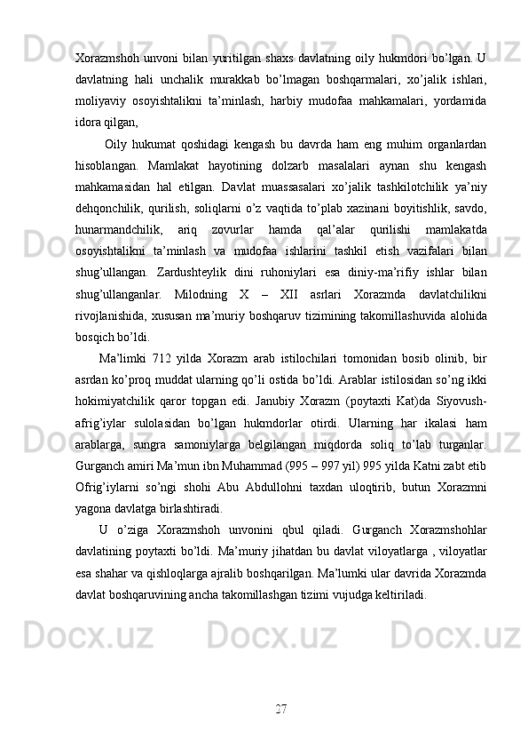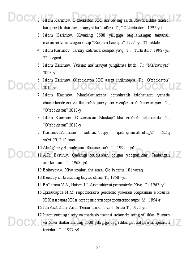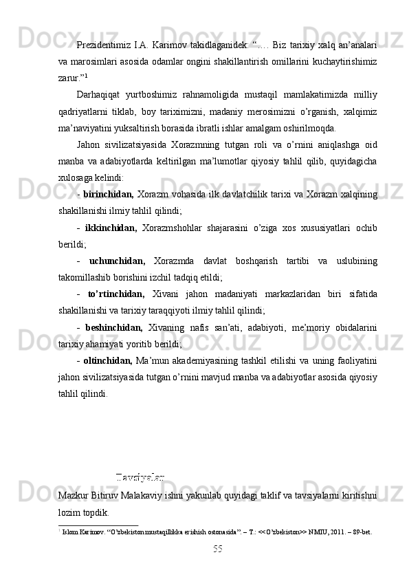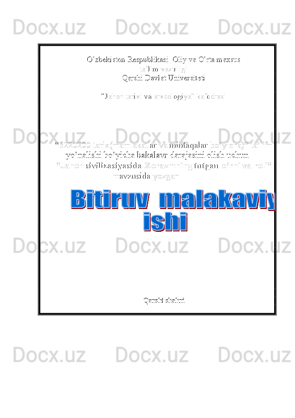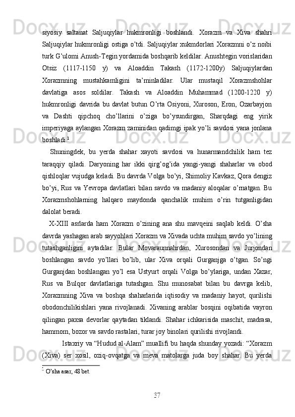 Jahon sivilizasiyasida Xorazmning tutgan o’rni va roli