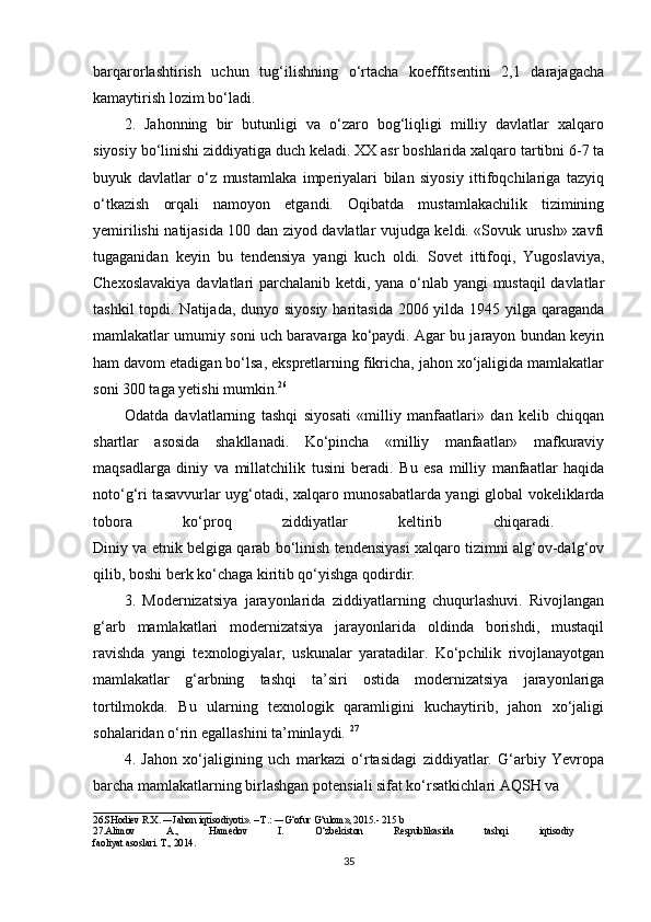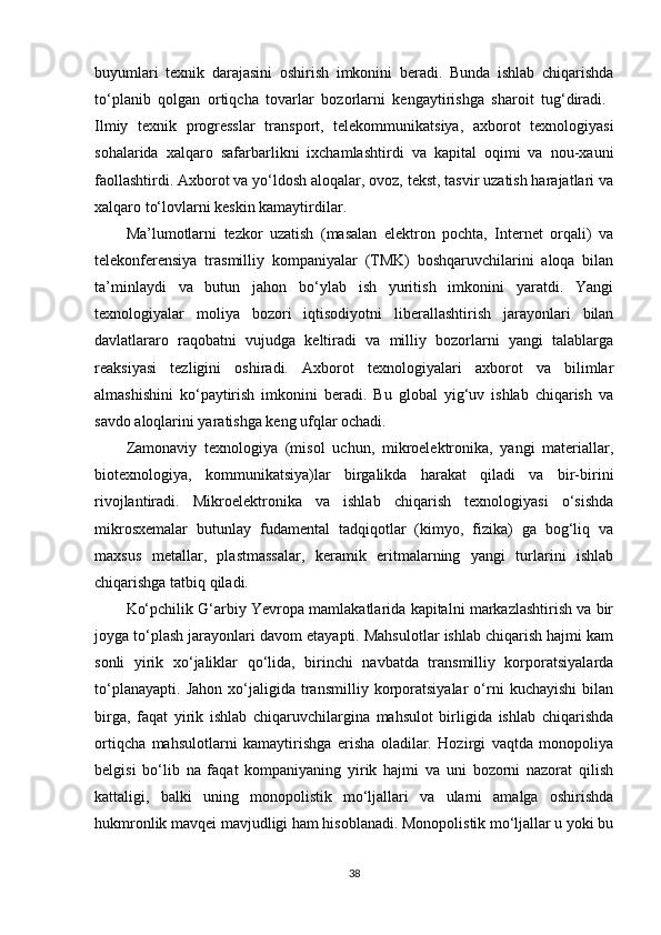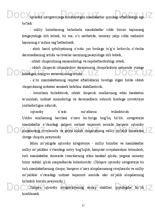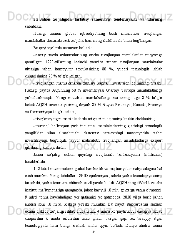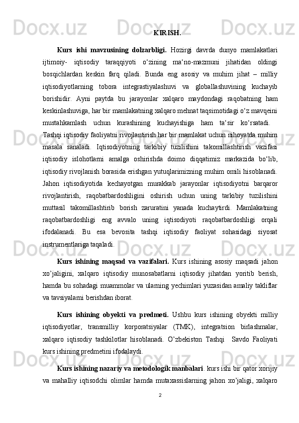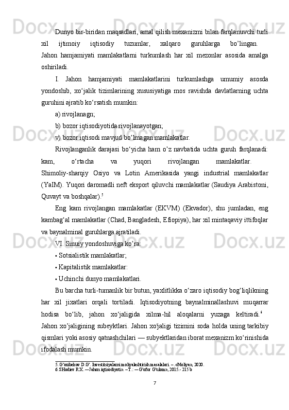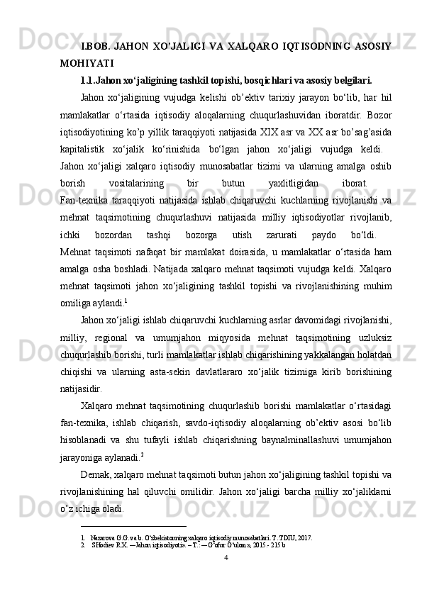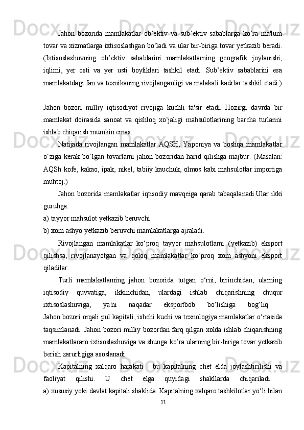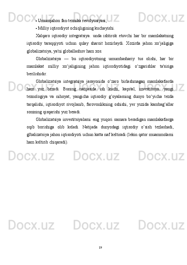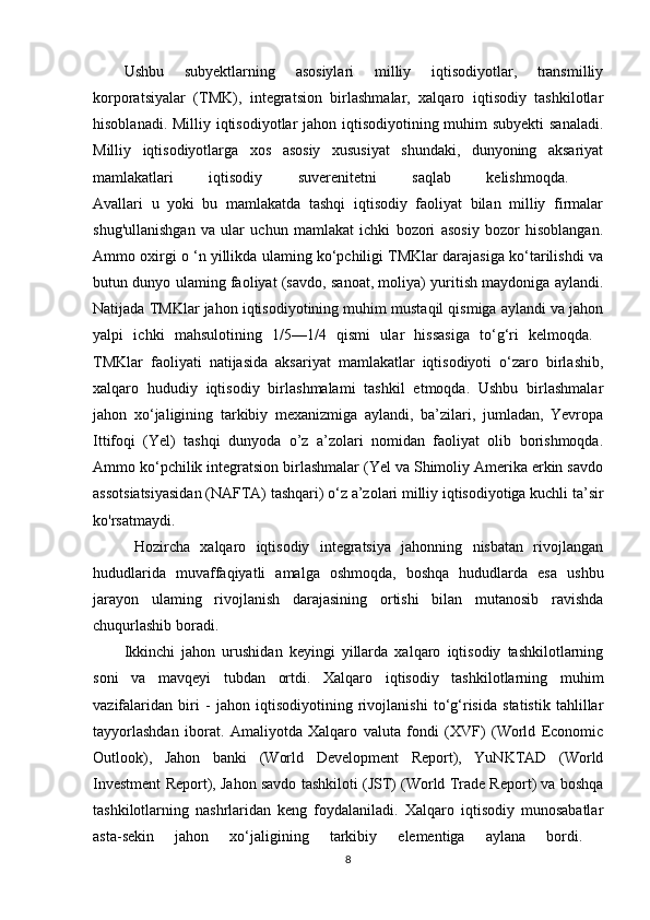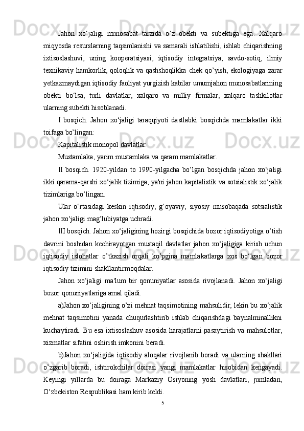 Jahon xo’jaligi va xalqaro iqtisodning asosiy mohiyati