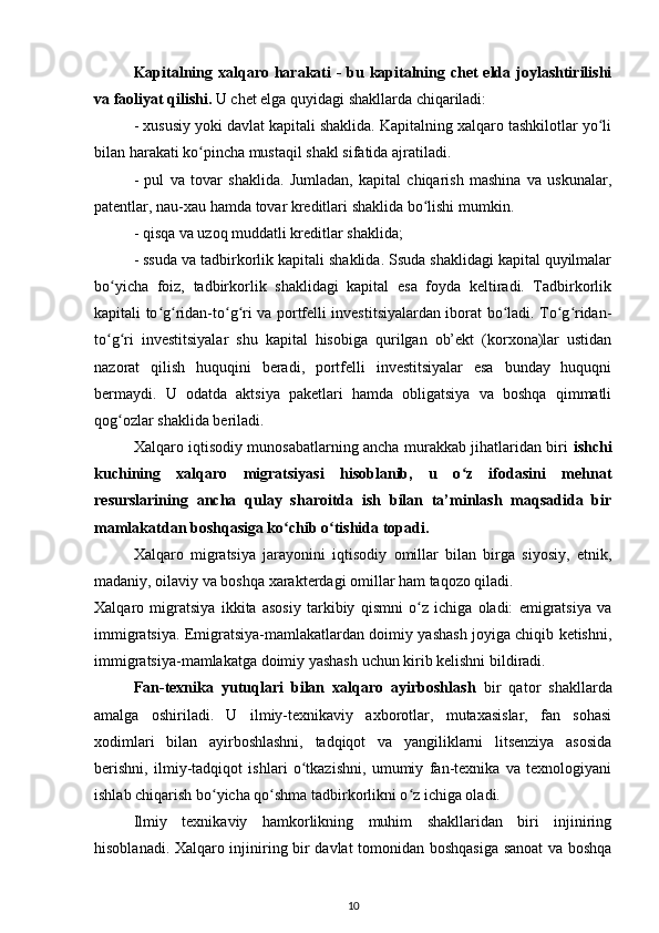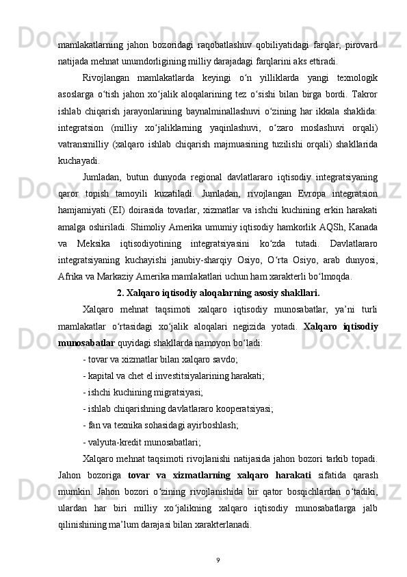 2. Xalqaro iqtisodiy aloqalarning asosiy shakllari. 8