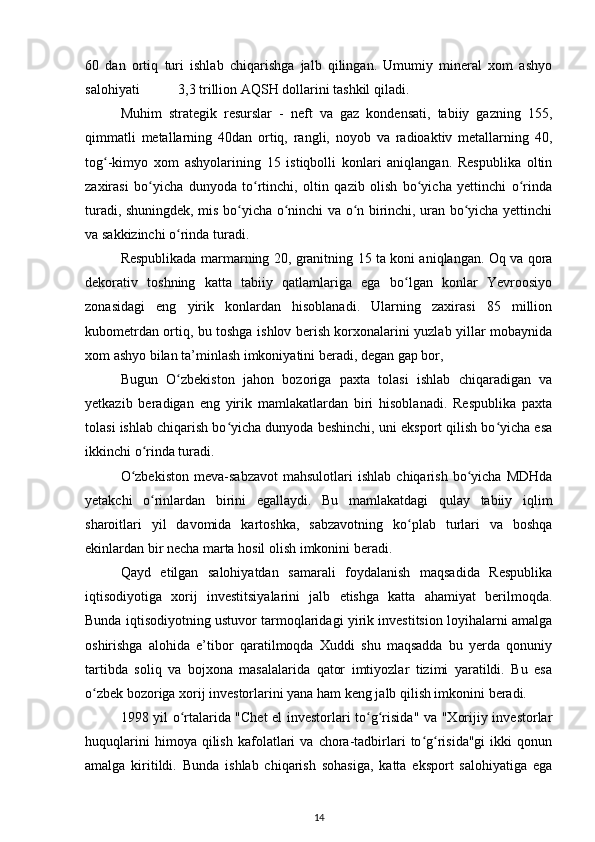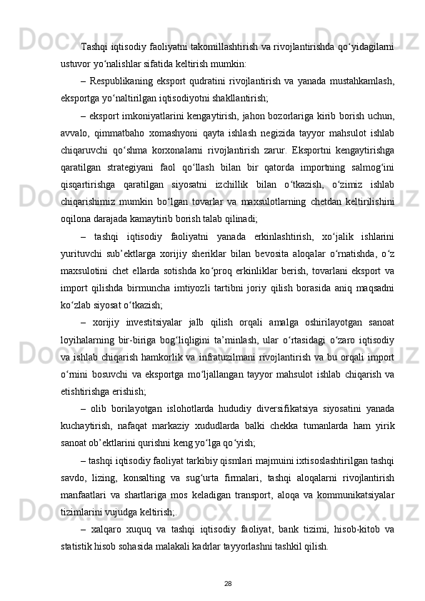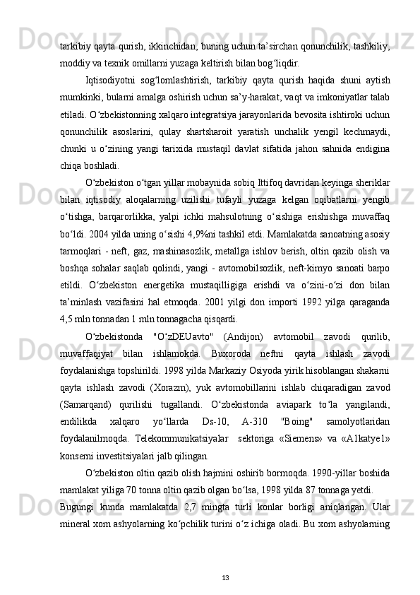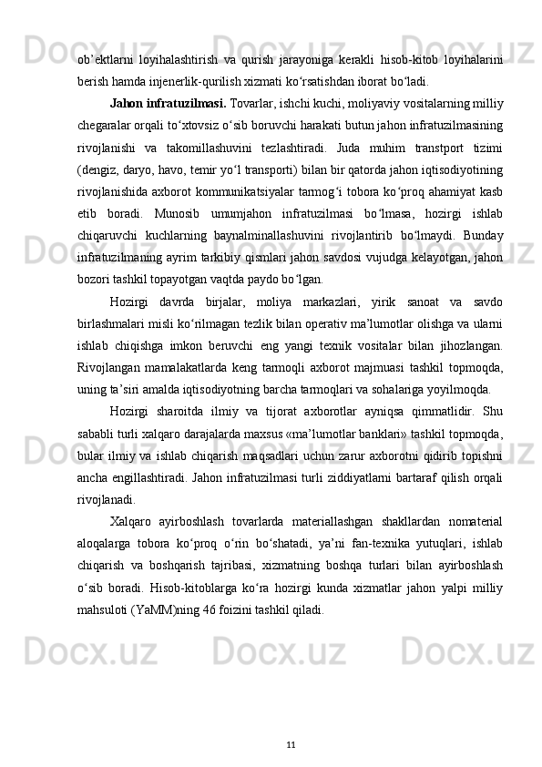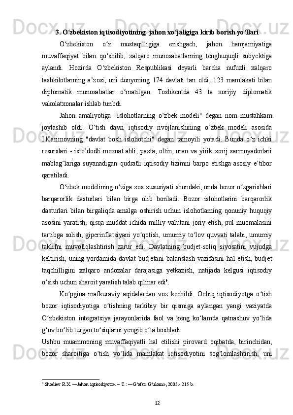 3. Oʻzbekiston iqtisodiyotining jahon xoʻjaligiga kirib borish yoʻllari. 11