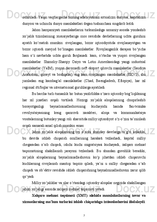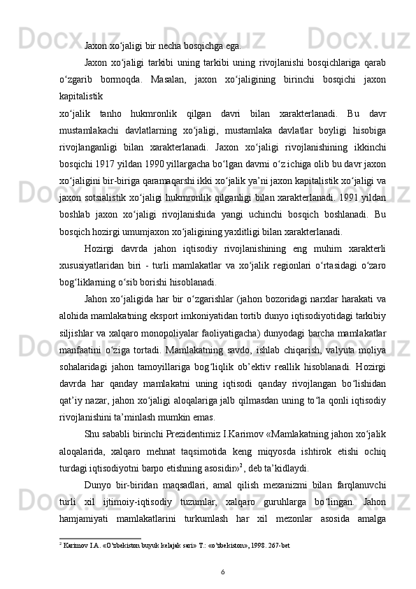 1. Jahon xoʻjaligining tashkil topishi, bosqichlari va asosiy belgilari. 4