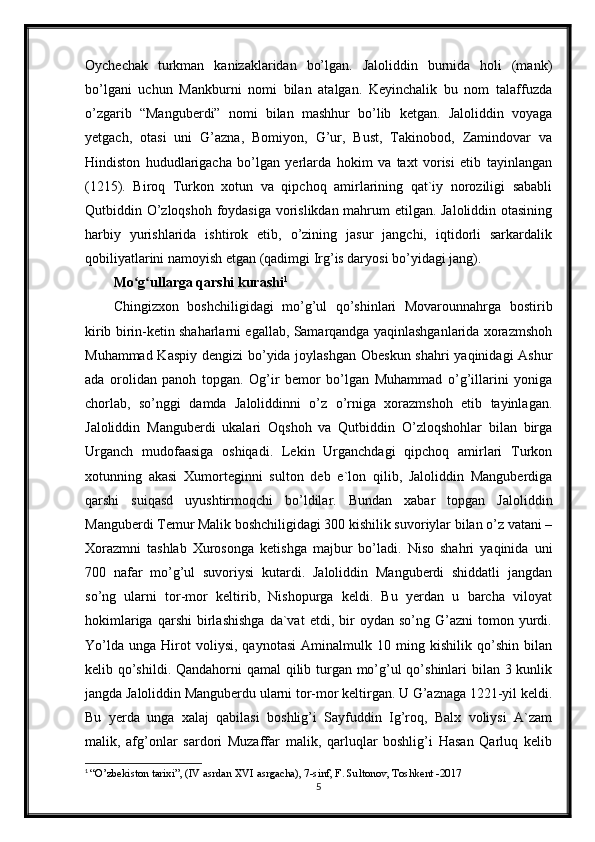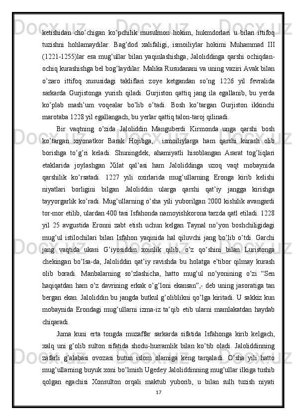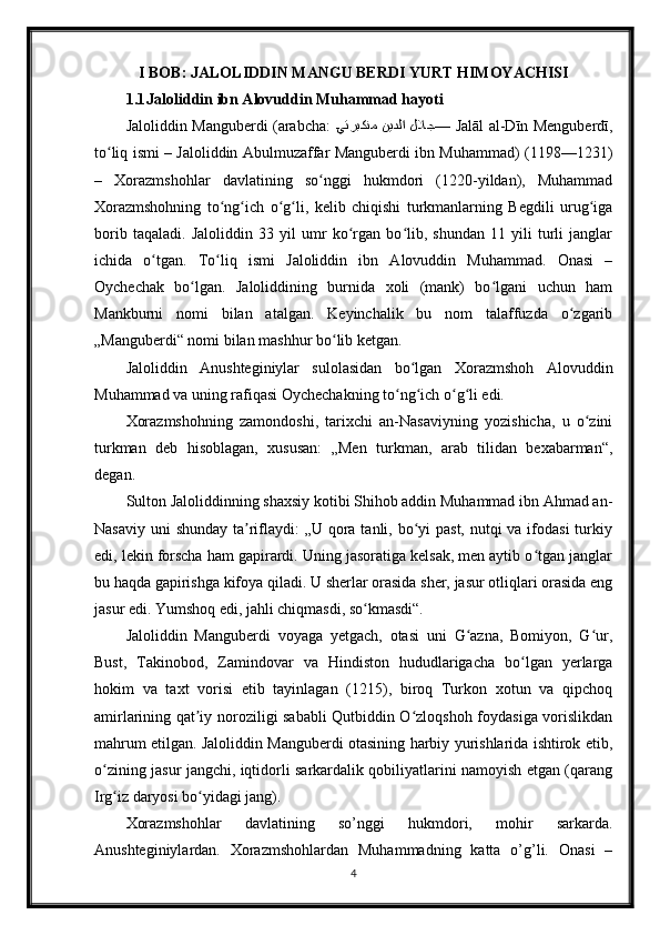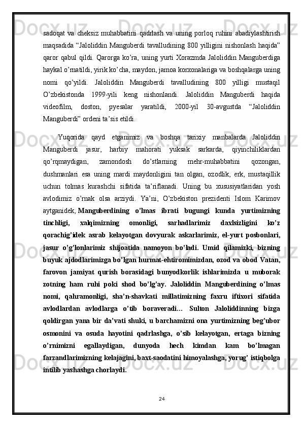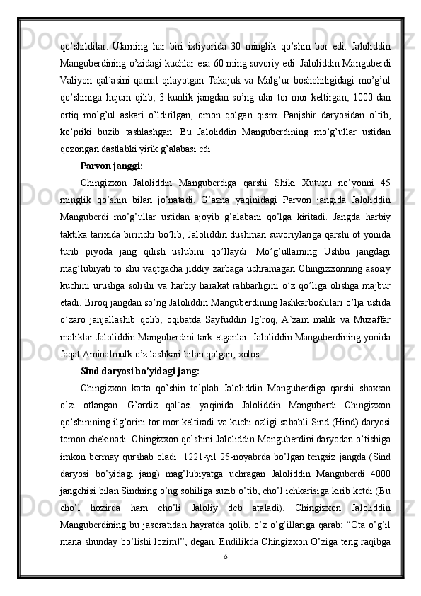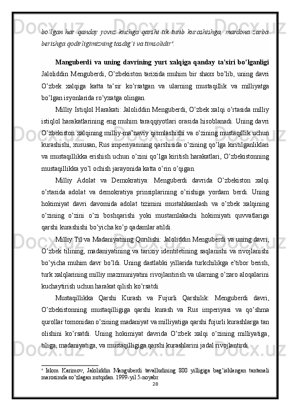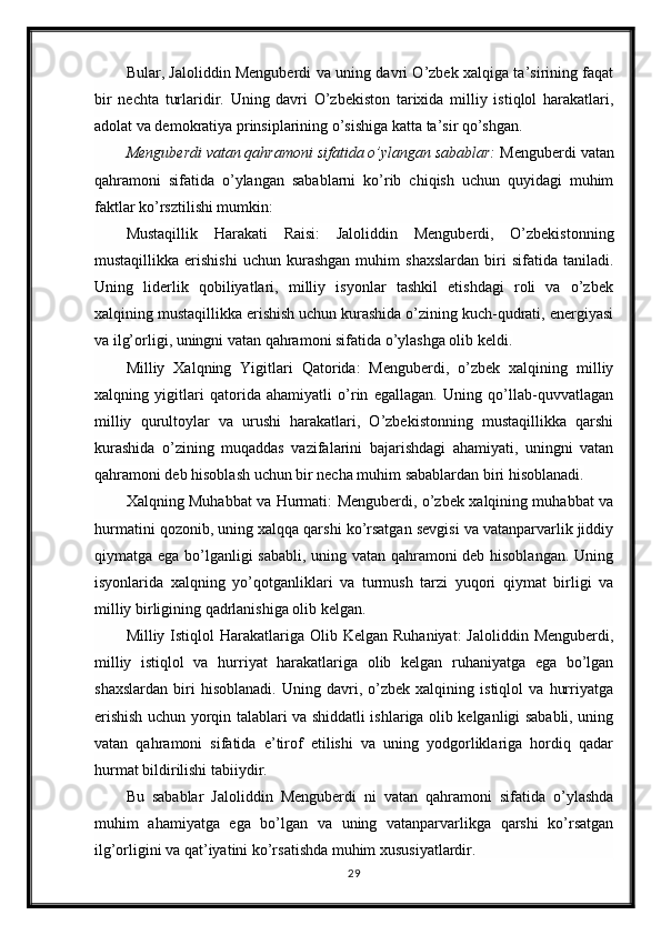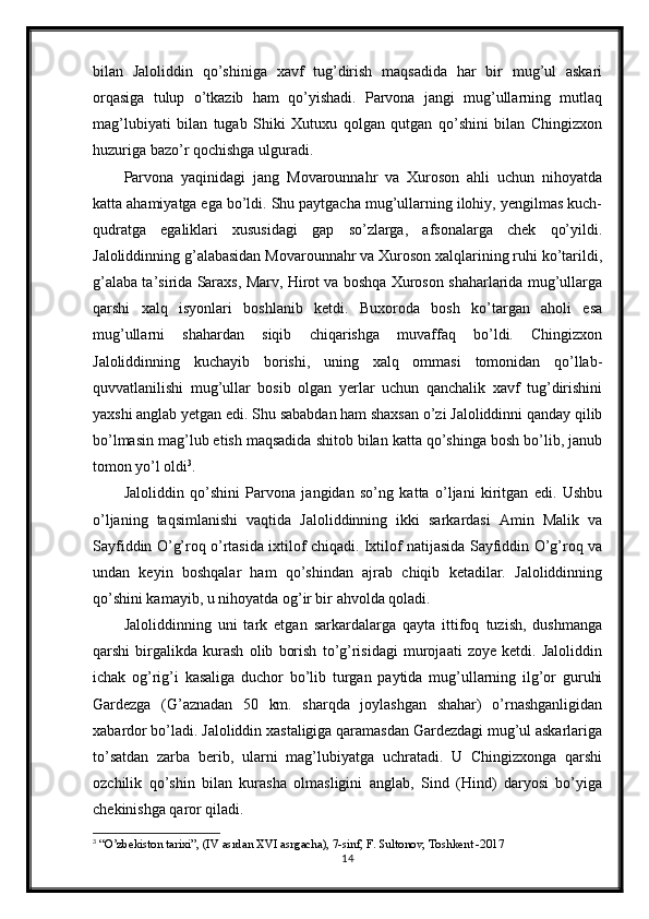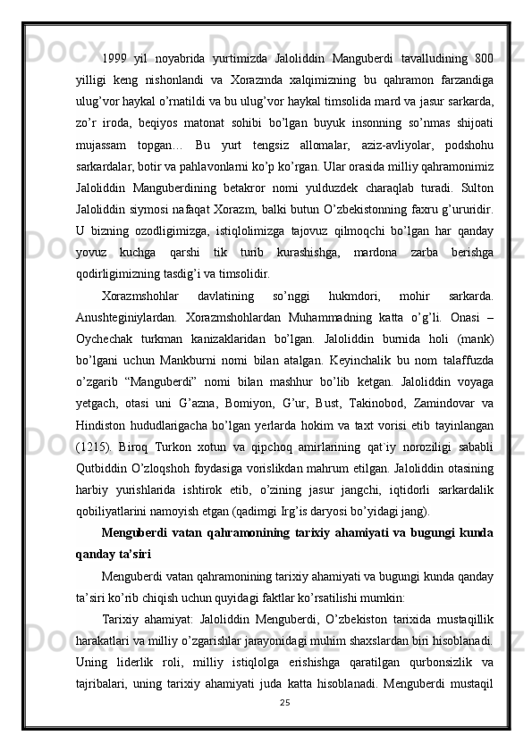 Jaloliddin Manguberdi vatan ozodligi uchun tolmas kurashchi