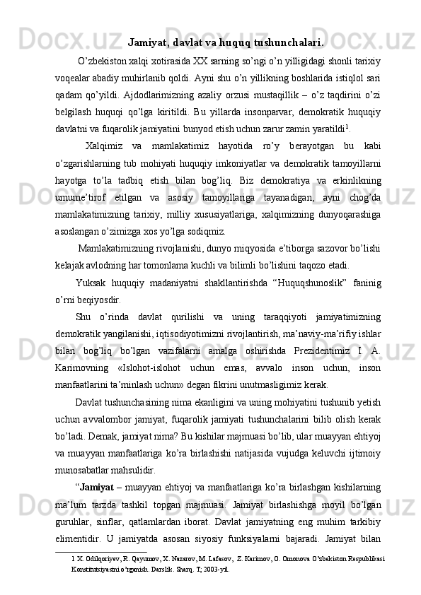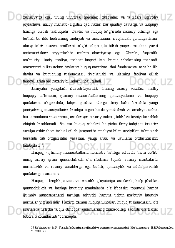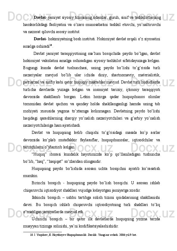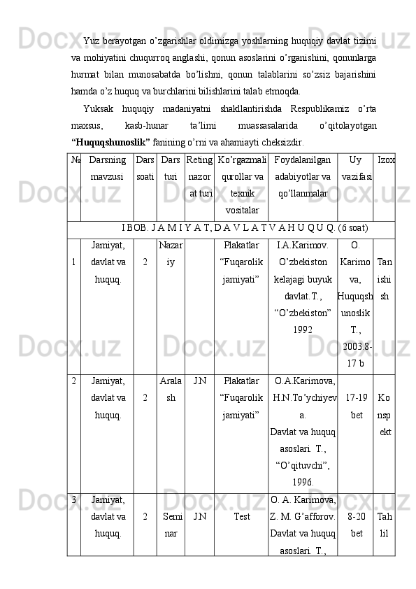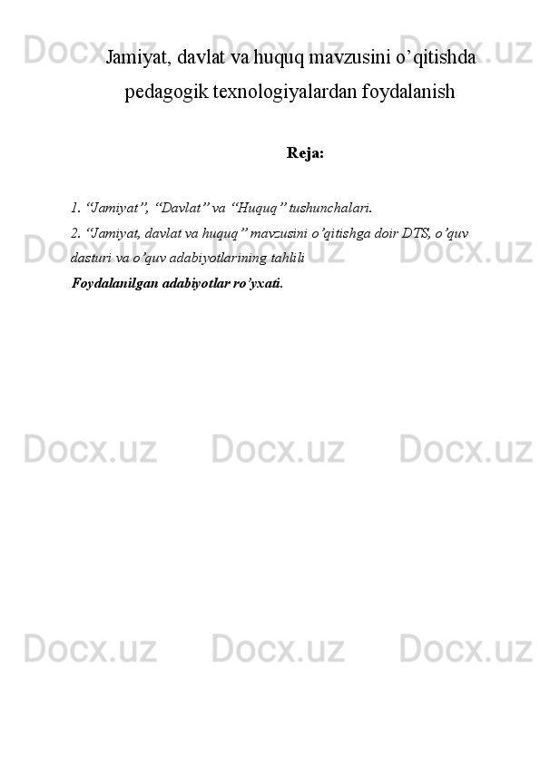 Jamiyat, davlat va huquq mavzusini o’qitishda pedagogik texnologiyalardan foydalanish