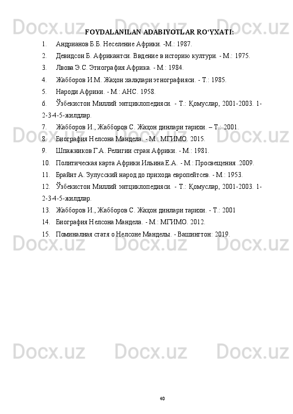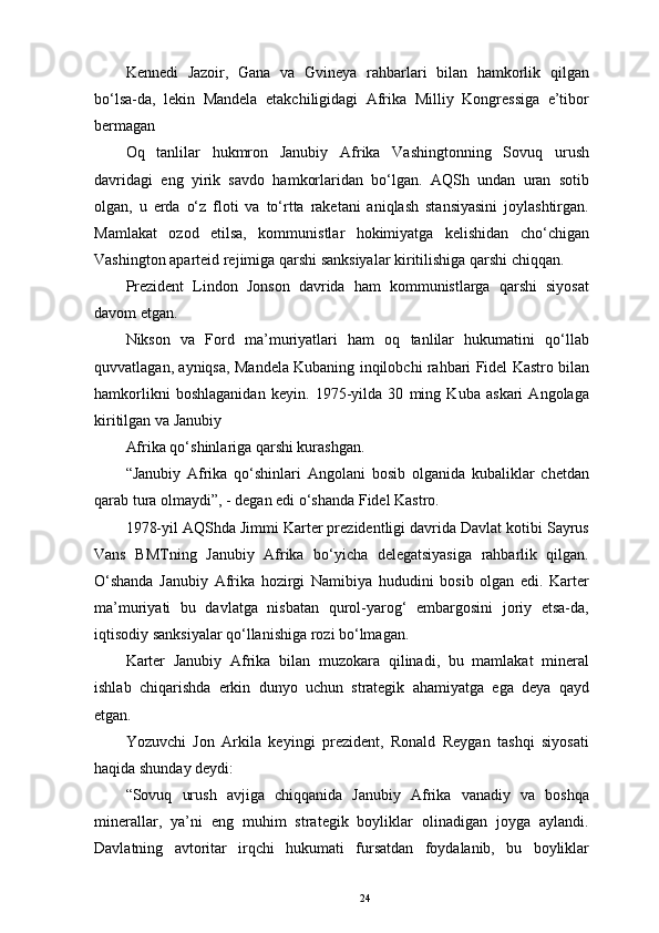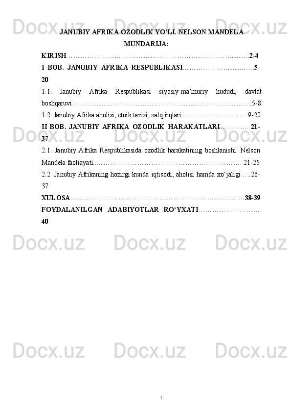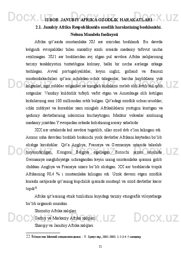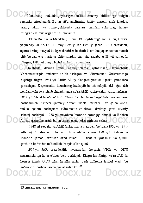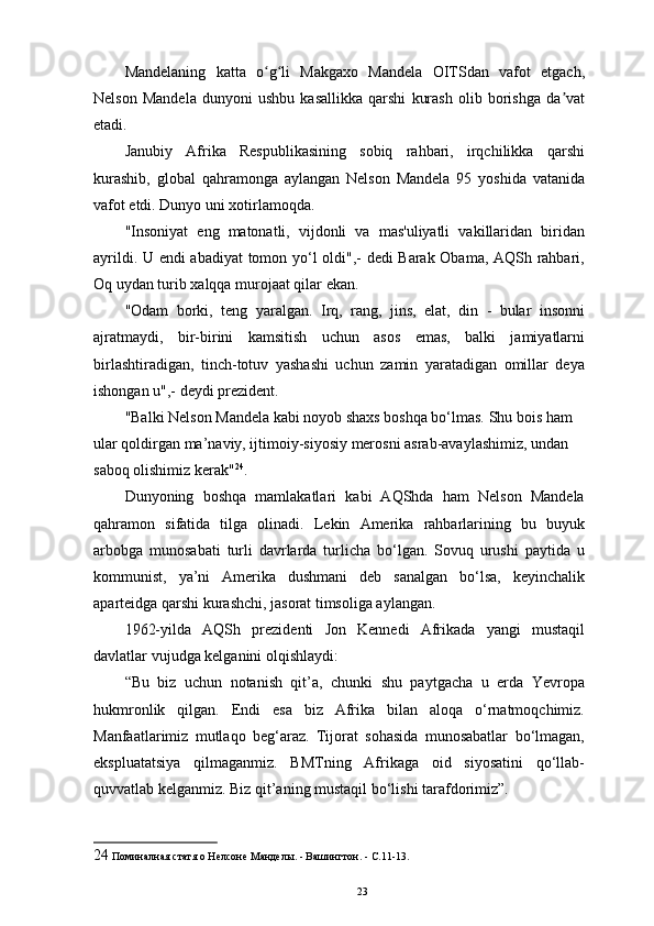JANUBIY AFRIKA OZODLIK YO‘LI. NELSON MANDELA