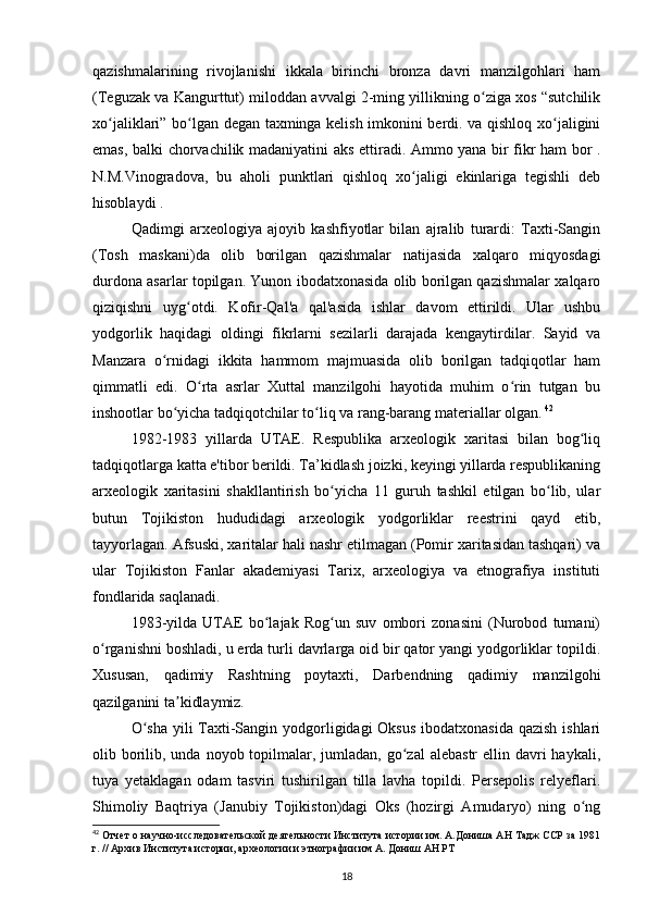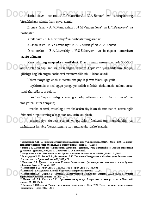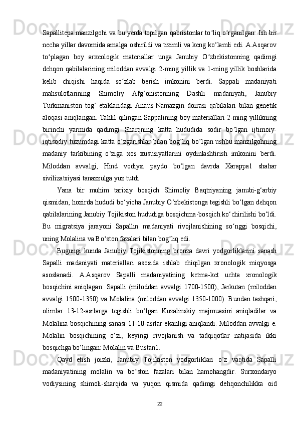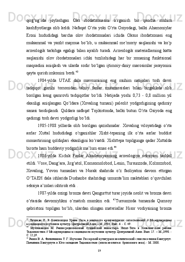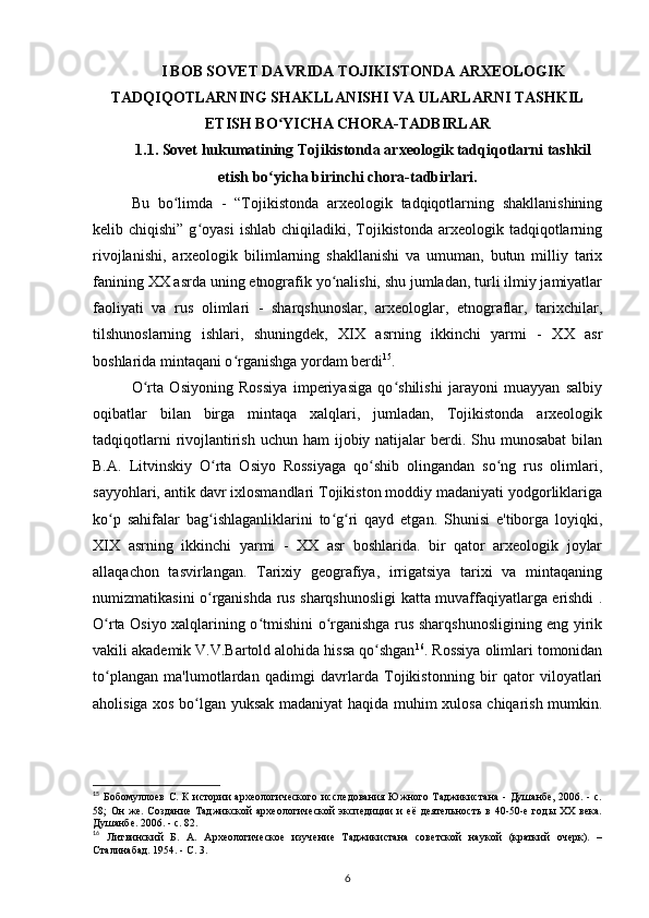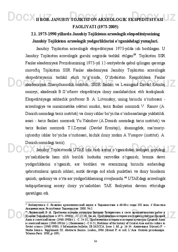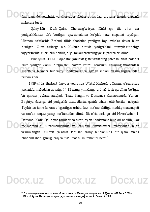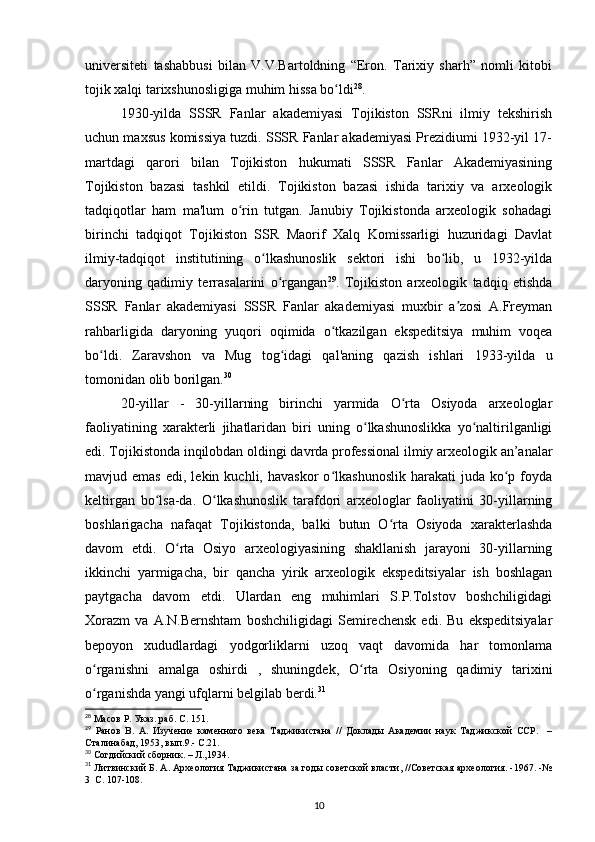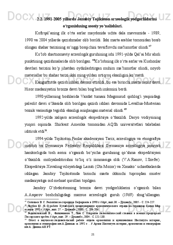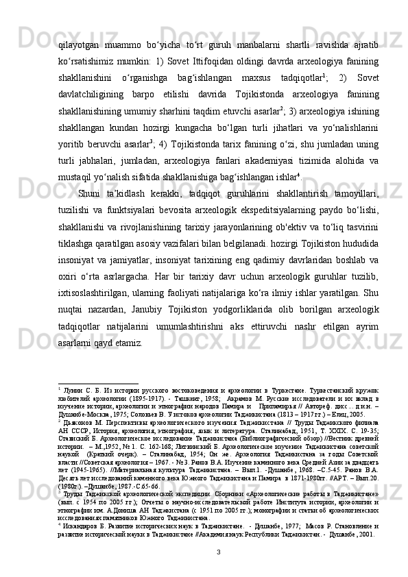 JANUBIY TOJIKISTON ARXEOLOGIK YODGORLIKLARINI O‘RGANISH TARIXI (XX-XXI ASR BOSHLARI)