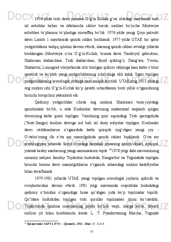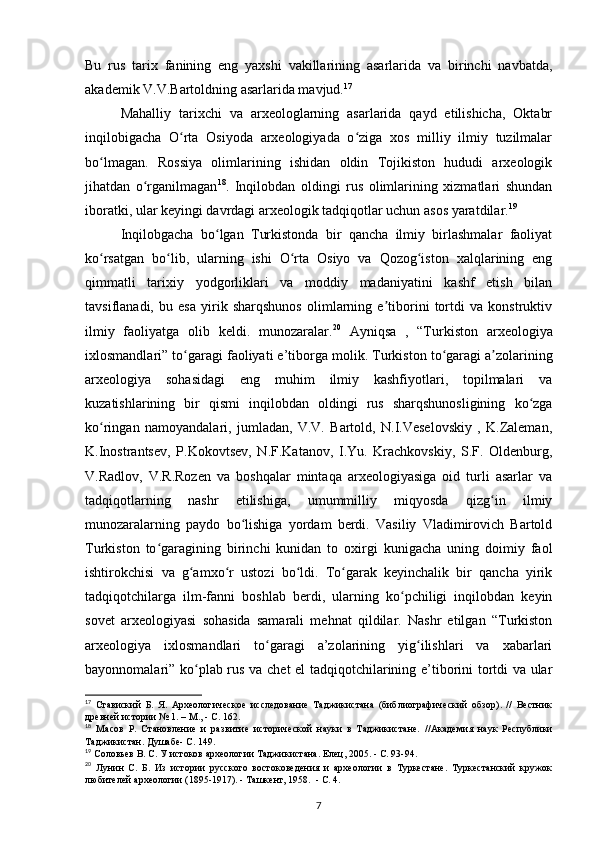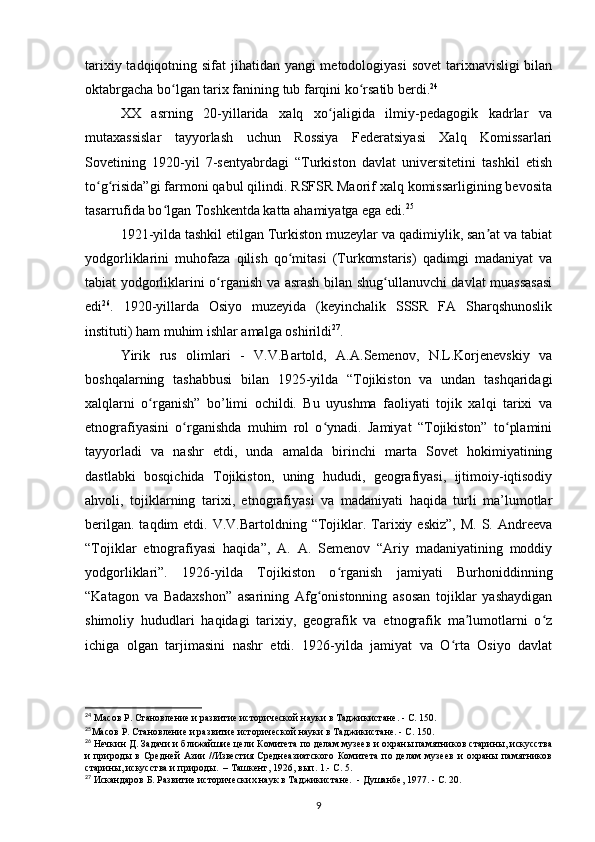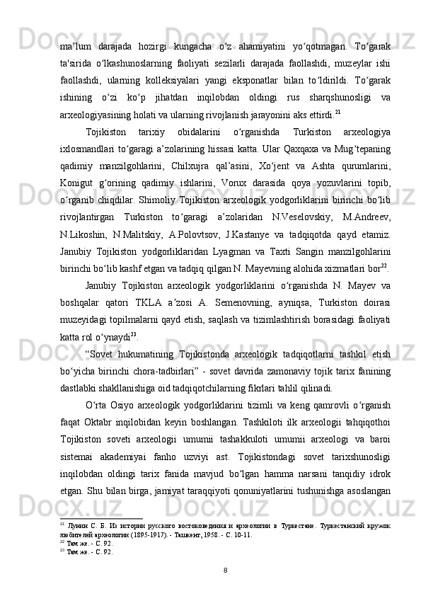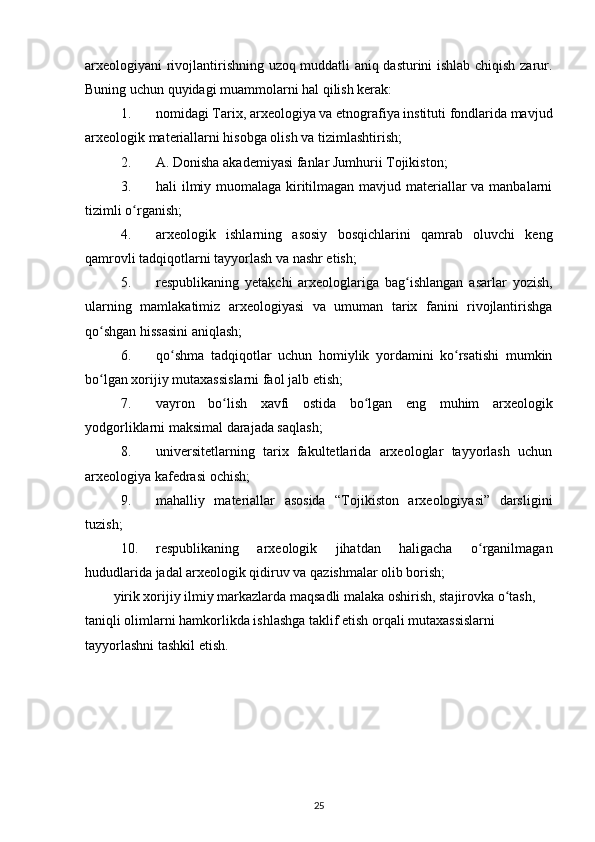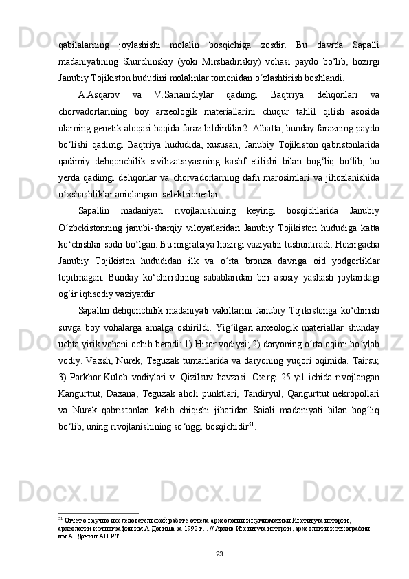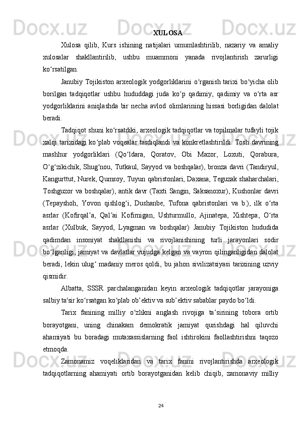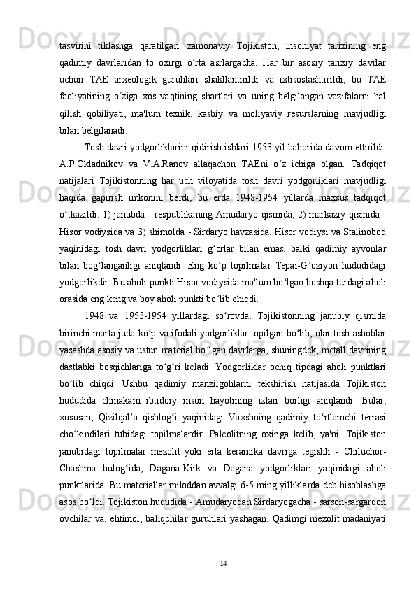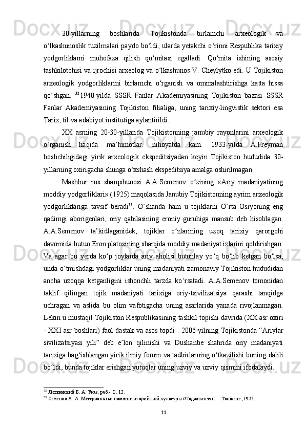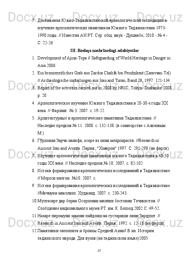 JANUBIY TOJIKISTON ARXEOLOGIK YODGORLIKLARINI O‘RGANISH TARIXI (XX-XXI ASR BOSHLARI)