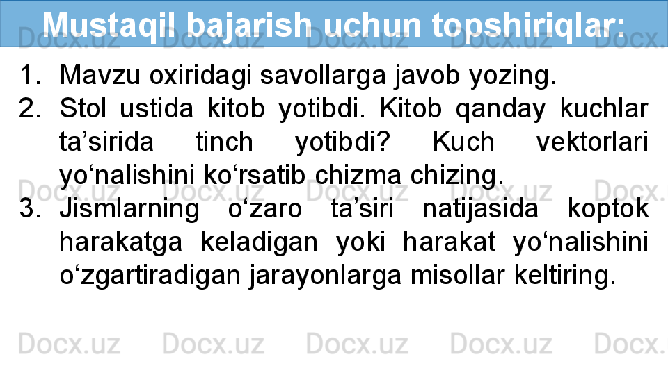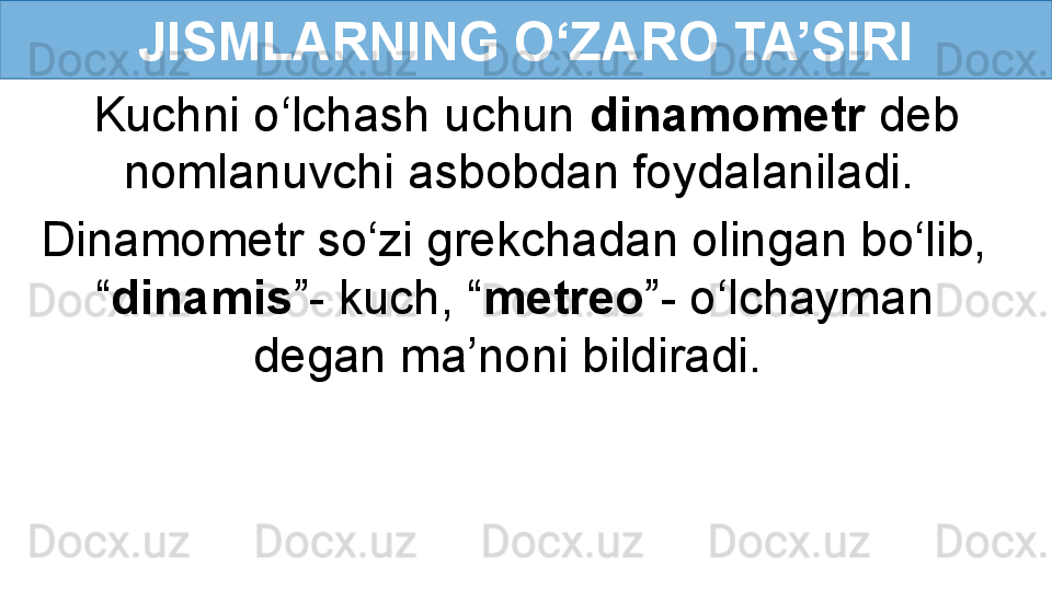 Jismlarning o‘zaro ta’siri. Kuch