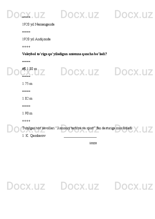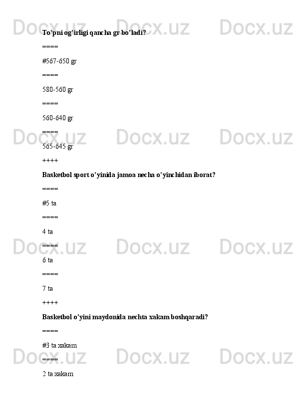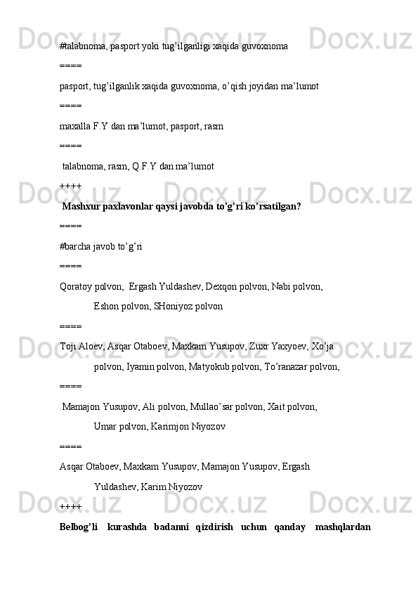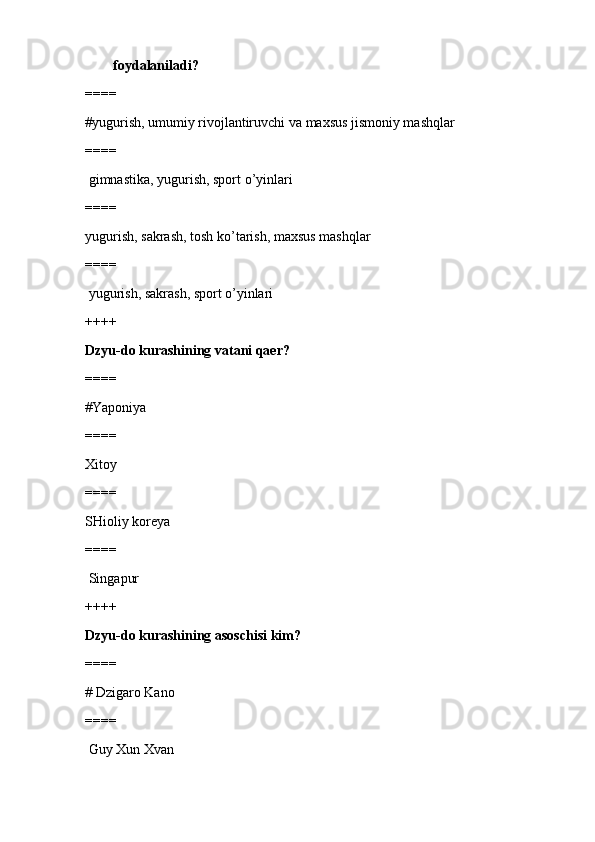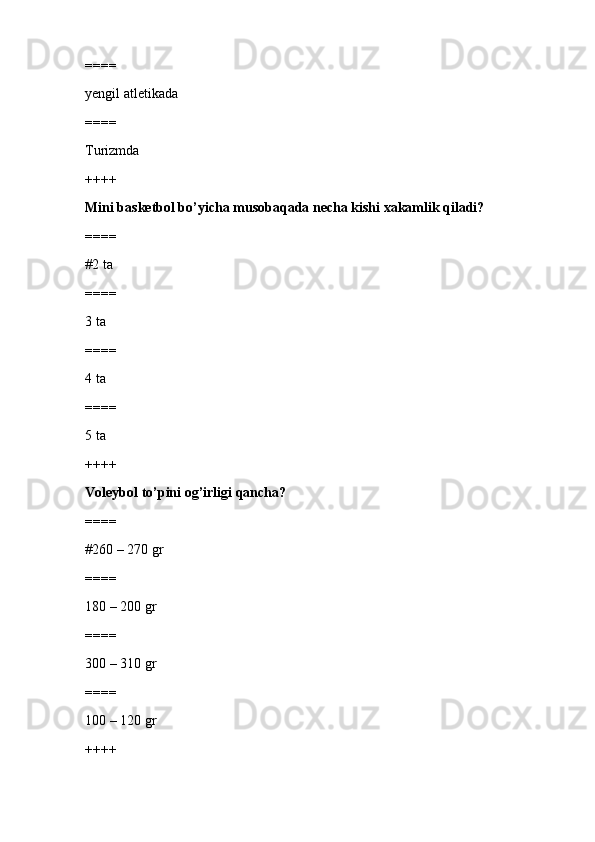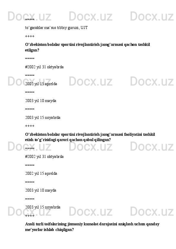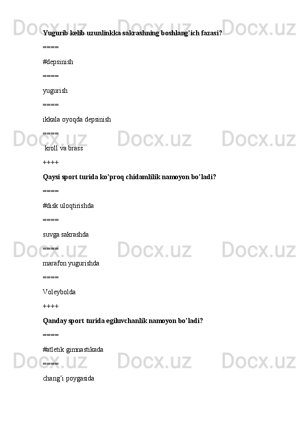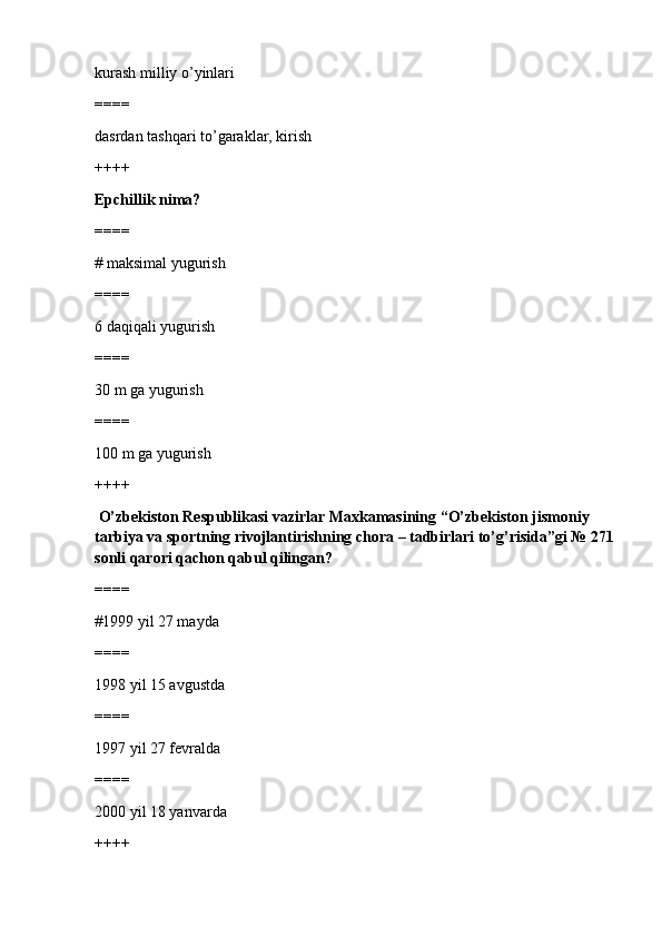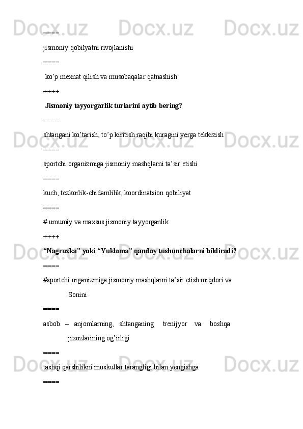 jismoniy tarbiya va sport TEST SAVOLLARI