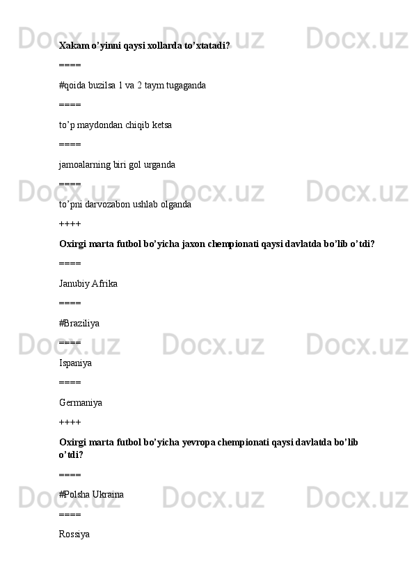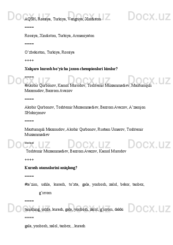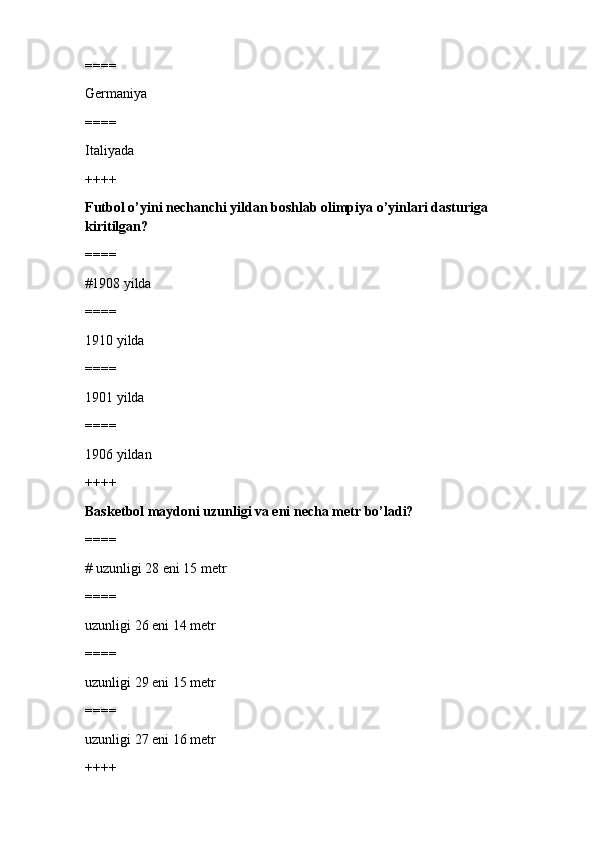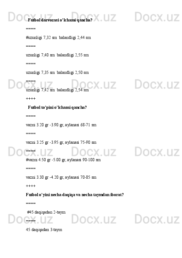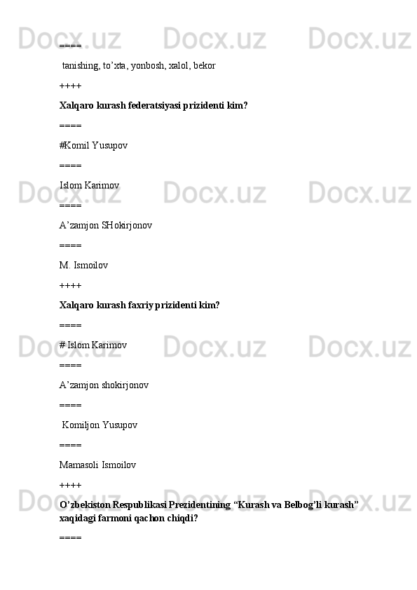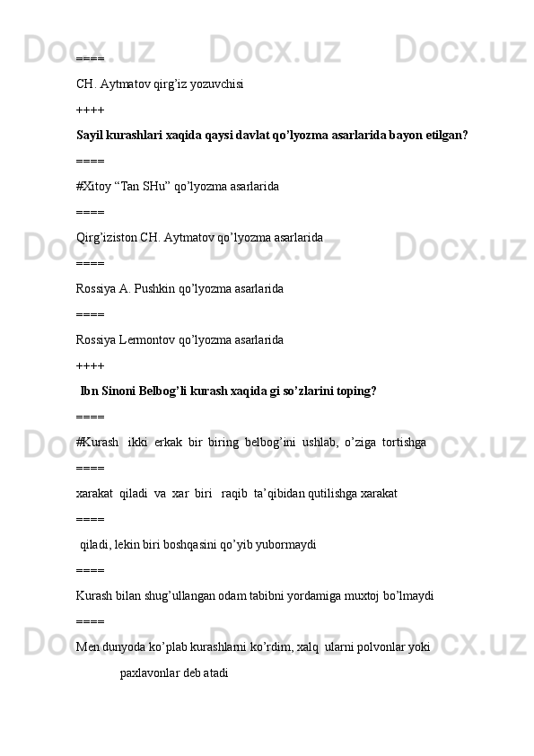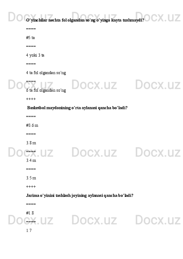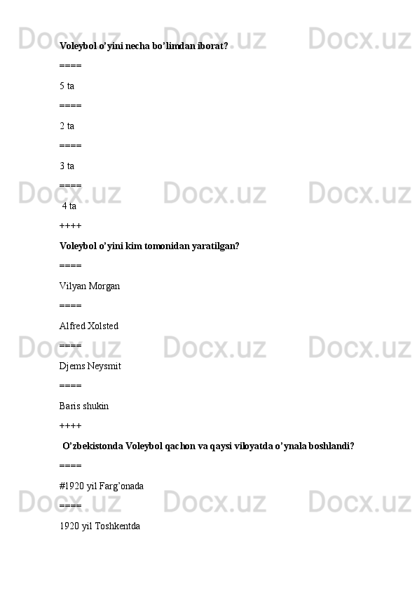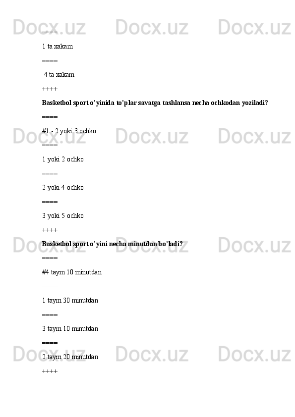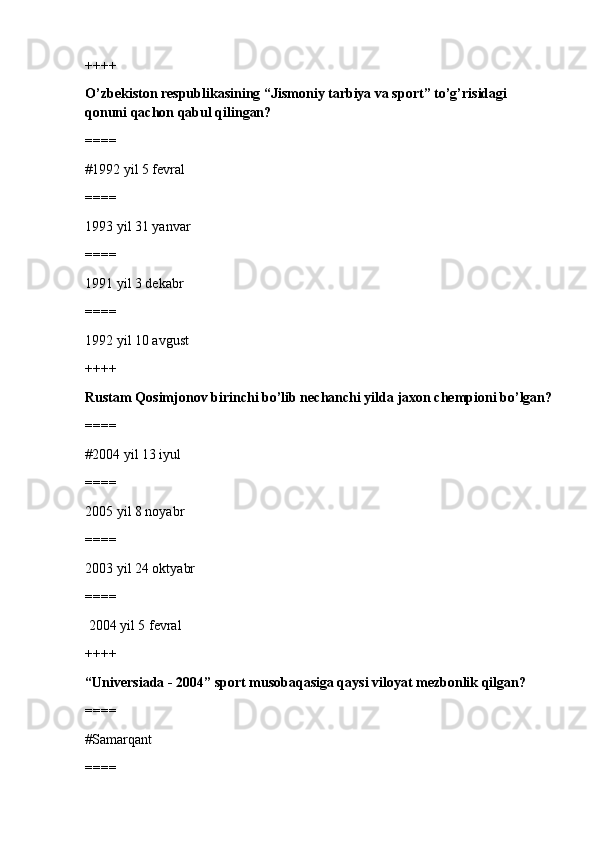 jismoniy tarbiya va sport TEST SAVOLLARI