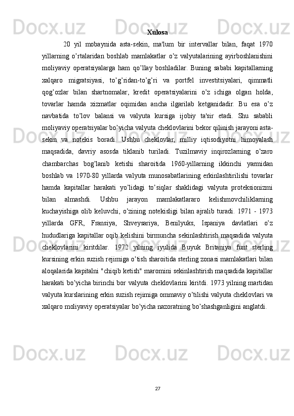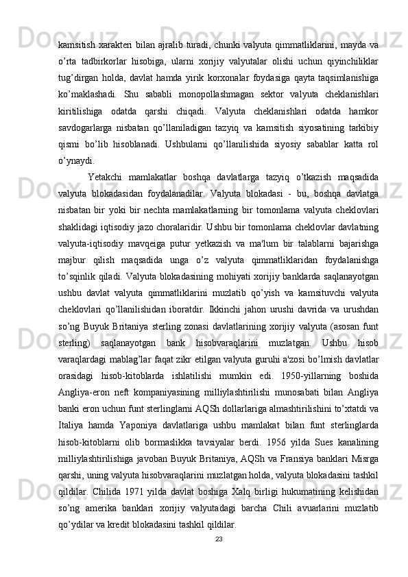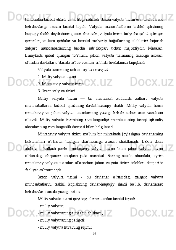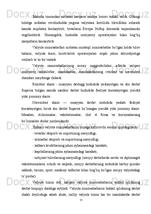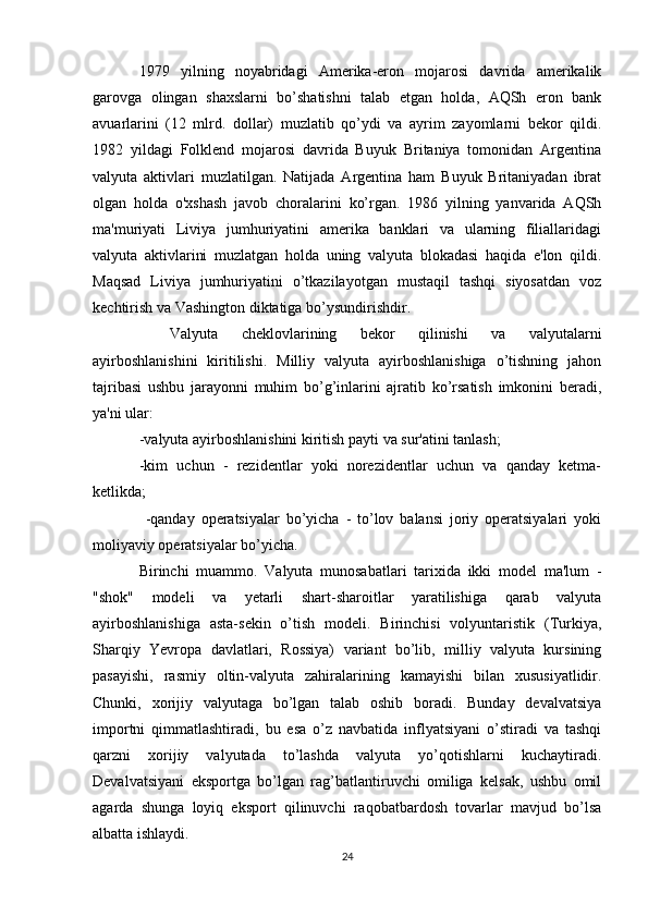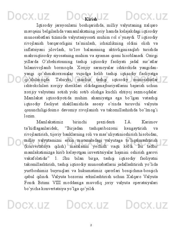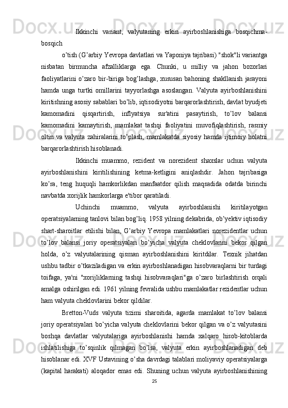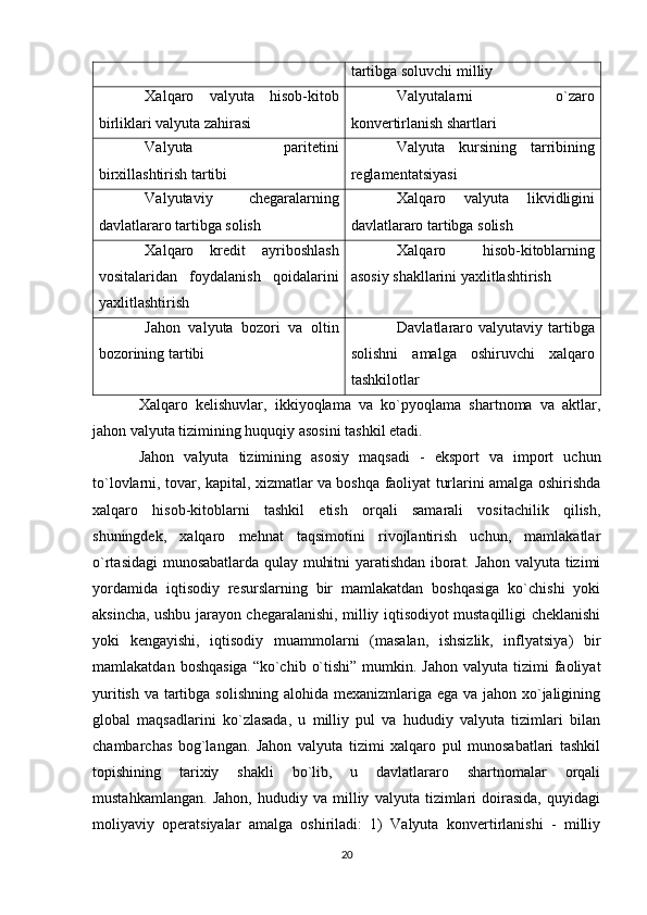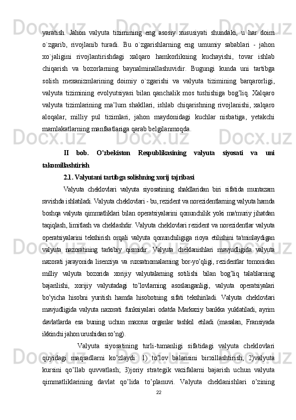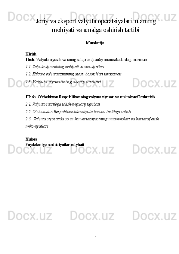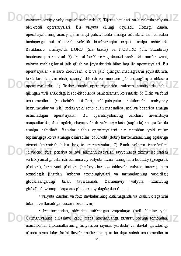 Joriy va eksport valyuta operatsiyalari, ularning mohiyati va amalga oshirish tartibi