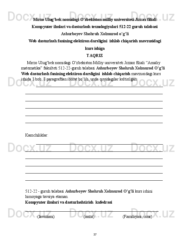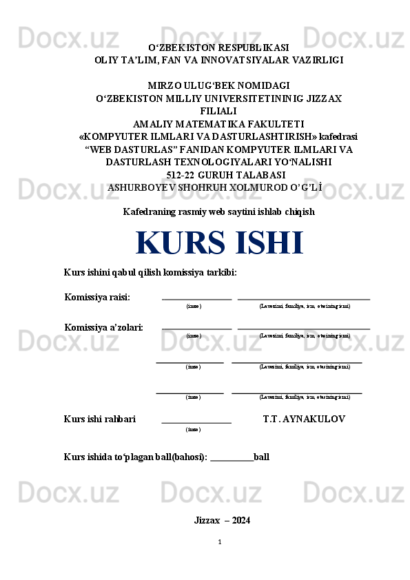 512-22  - guruh talabasi  Ashurboyev Shohruh Xolmurod O’g’li   kurs ishini