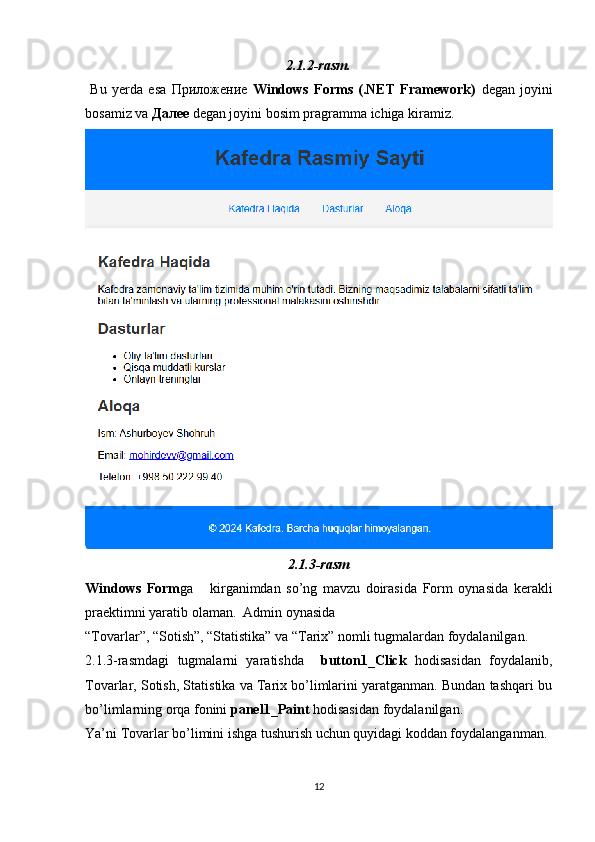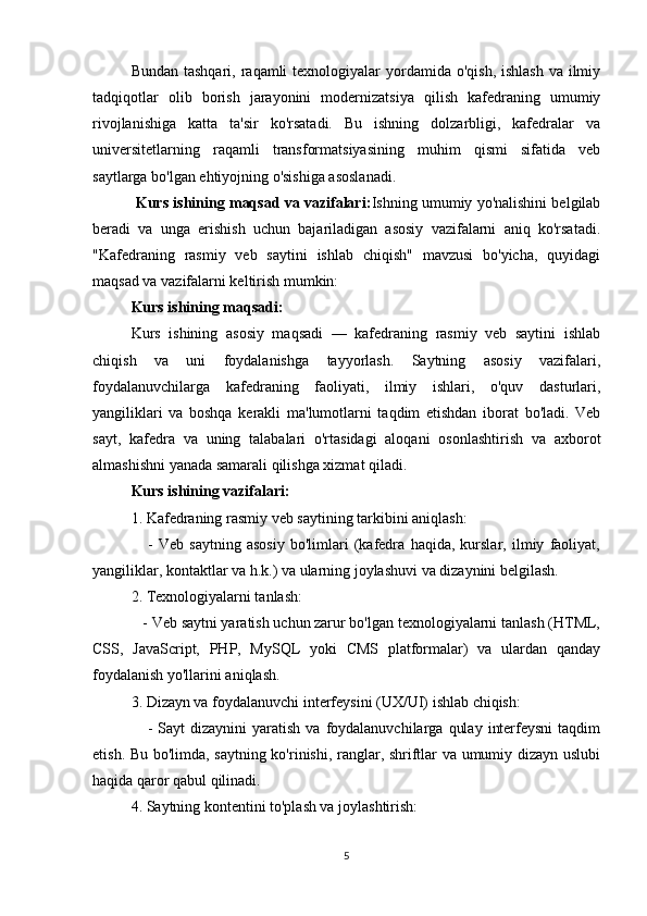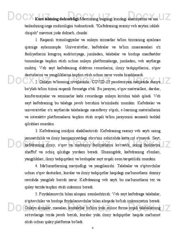 tanlashning nega muhimligini tushuntiradi. "Kafedraning rasmiy veb saytini ishlab