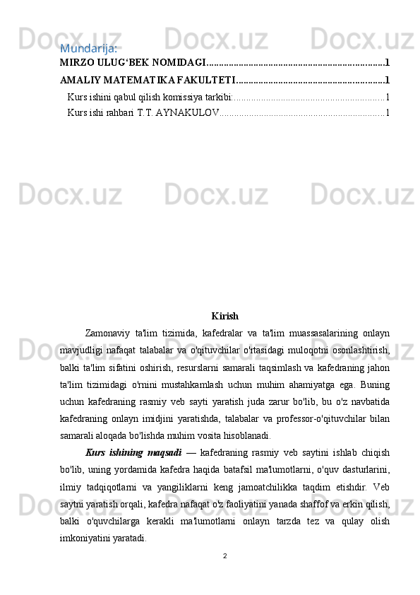 muhtoj.   Veb   sayt   kafedraning   elektron   resurslarini,   ilmiy   tadqiqotlarini,   o'quv