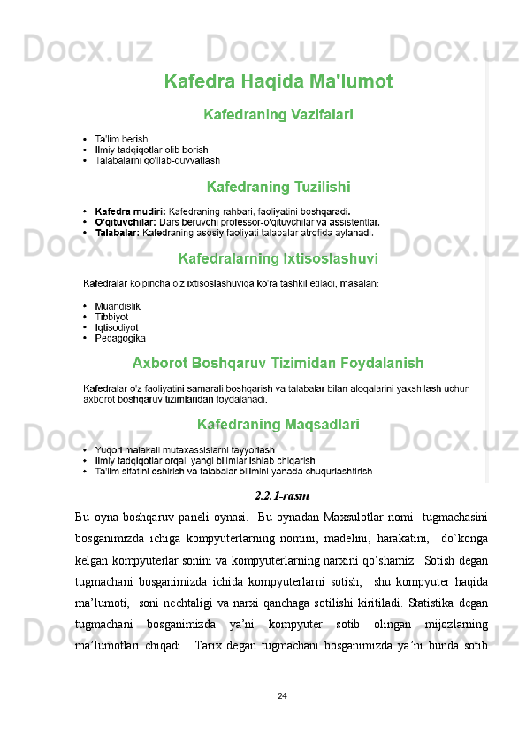 ravishda   yangilab   borish   zarur.   Kafedraning   veb   sayti   bu   ma'lumotlarni   tez   va