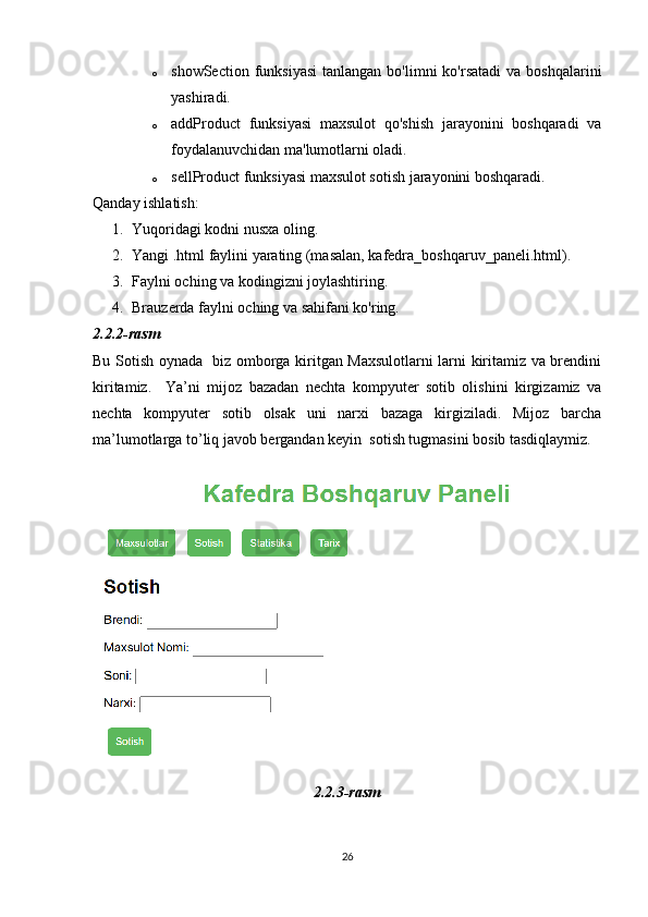mumkin.     Yana   bir   afzallik   tarafi   sotilgan   mahsulotlarni   qaysi   biri   eng   ko’p