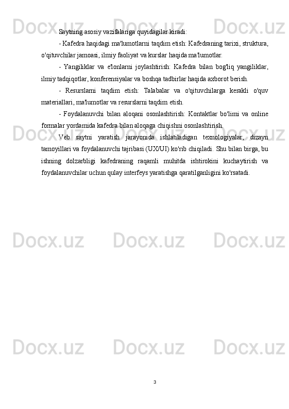3.   Kafedraning   imidjini   shakllantirish:   Kafedraning   rasmiy   veb   sayti   uning