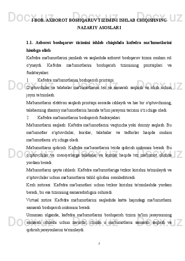 1.3.   Kafedra   ma'lumotlarini   jamlovchi   tizimda   berilganlar   bazasi