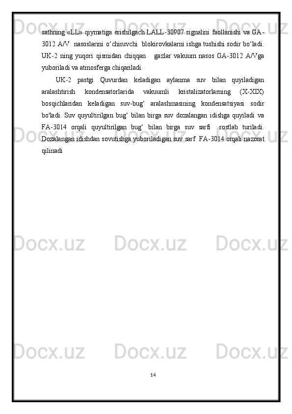 quyiladi.UK-1   kondensatorda   LG-30906   sath o’lchagich   orqali   rostlanadi.UK-2