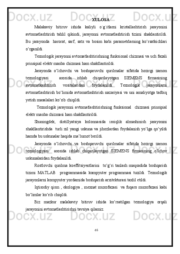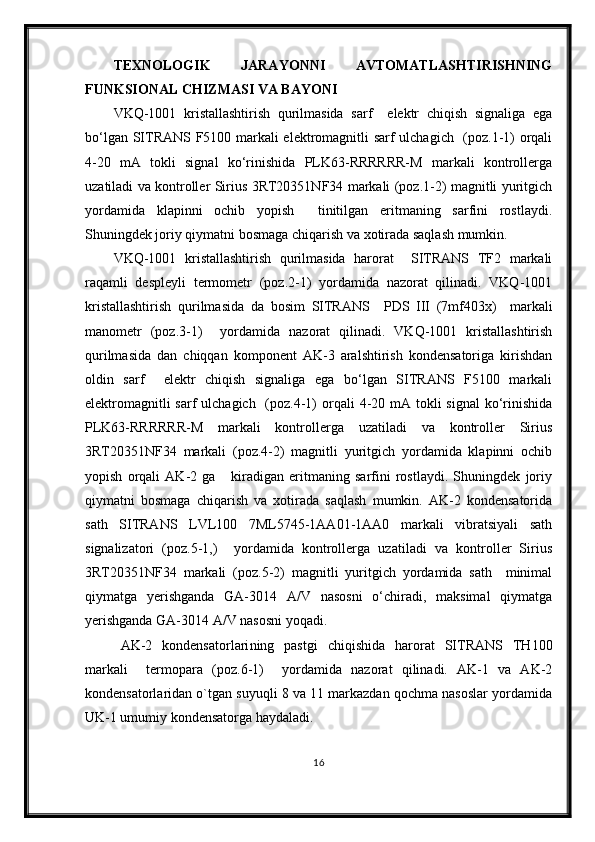 3Texnologik jarayonni avtomatlashtirishning funksional chizmasi va bayoni.........................................................................................