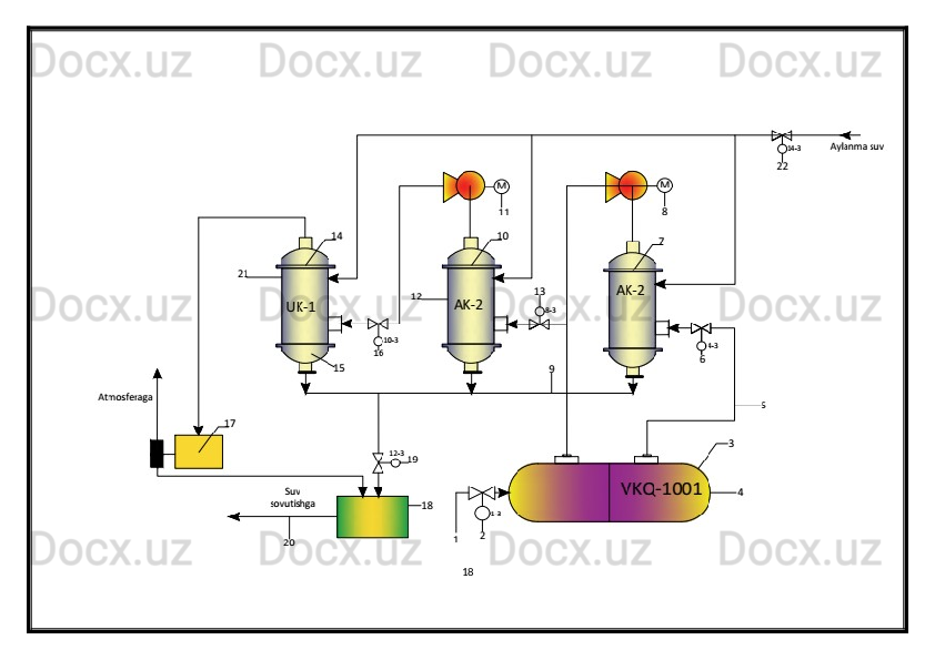 zaxira   ombori;   4   -   sarflanadigan   idish;   5   -   vintli   erituvchi   I;   6   –   “Brandes”