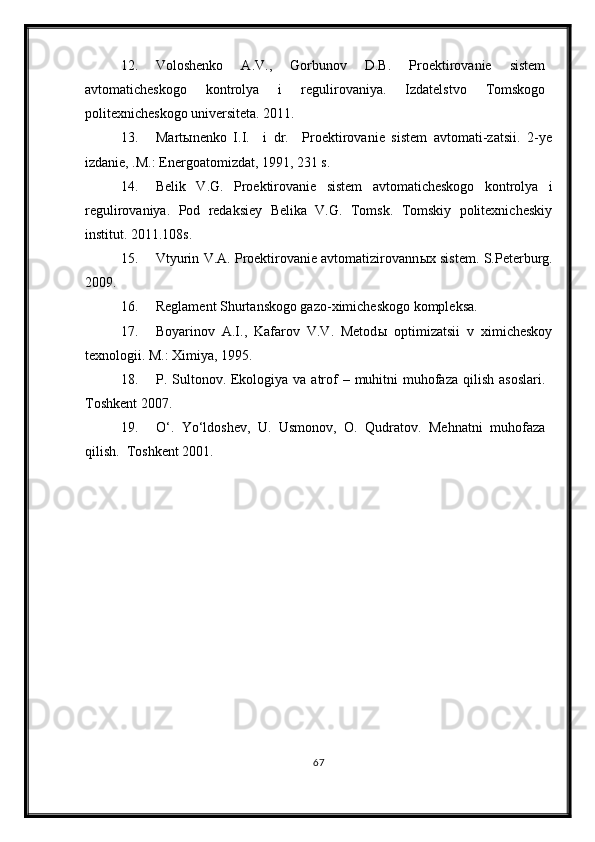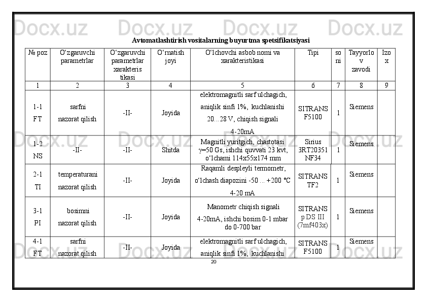 4Avtomatlashtirish vositalarining buyurtma spetsifikatsiyasi..............................................................................