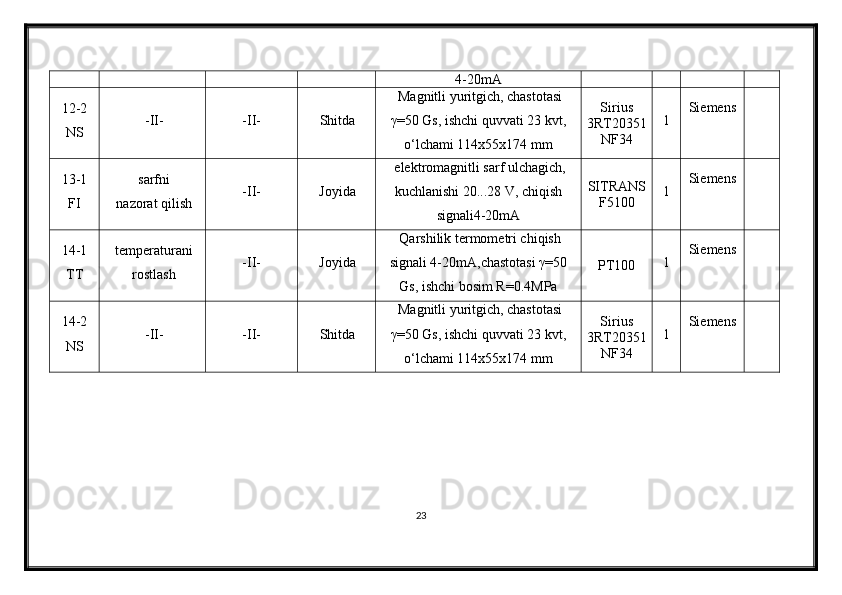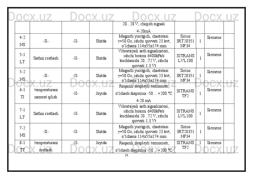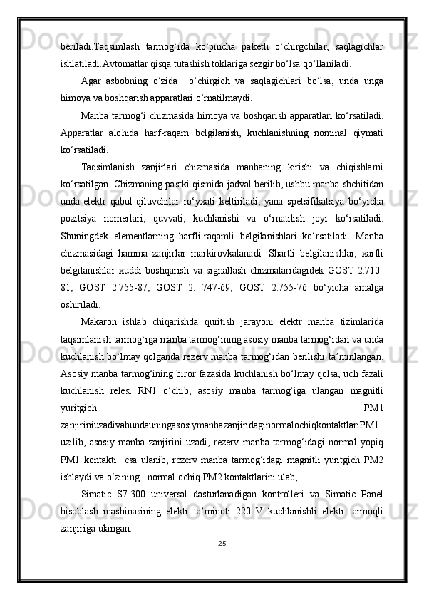 ko‘rsatiladi, ikkinchi qatorda avtomatlashtirish vositalarining markalari keltiriladi,