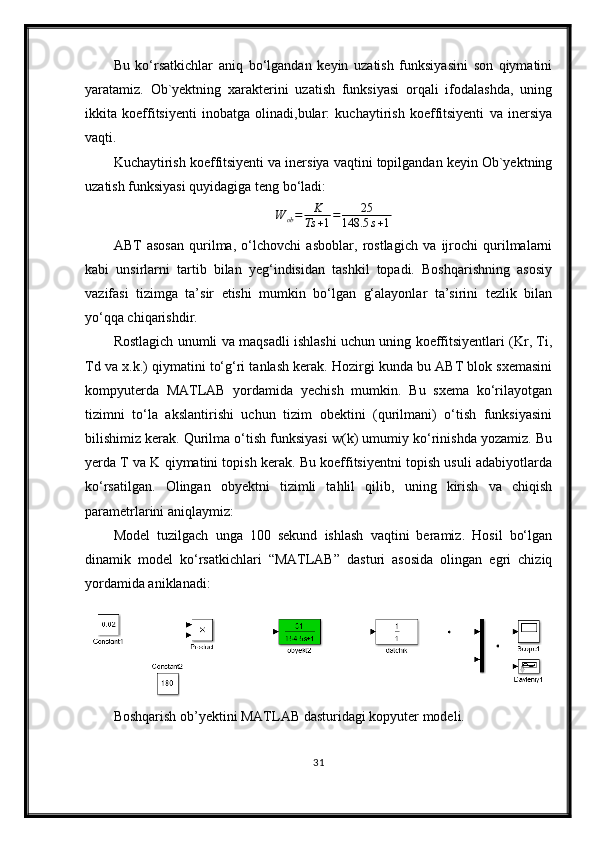 tаnlаnаdi.Obyektgа   PID   (proporsionаl-integrаl-differensial)   rostlаsh   qonunigа