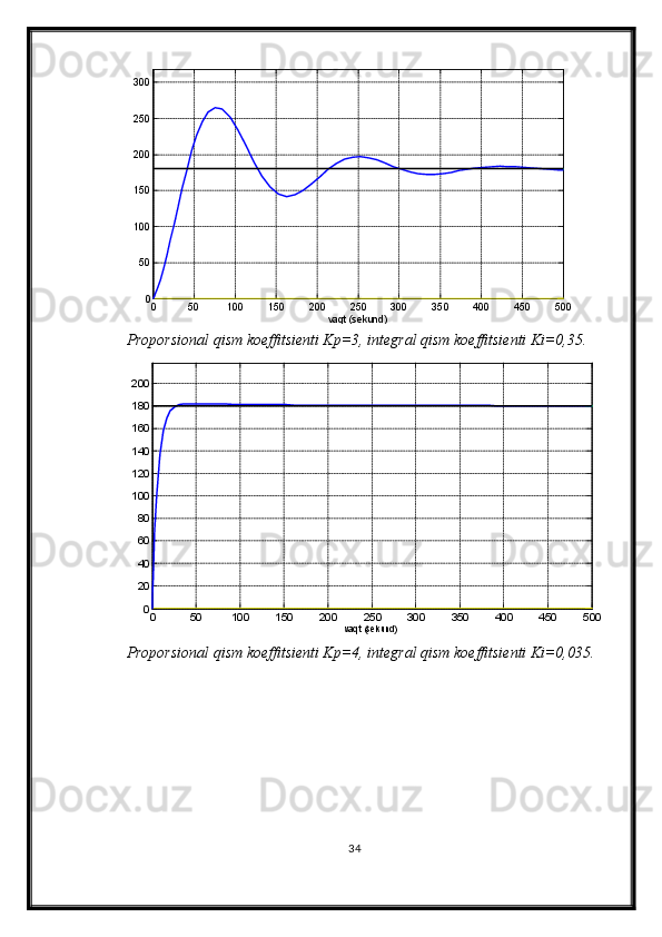 Proporsional qism  koeffitsienti K p = 3 ,   integral  qism  koeffitsienti Ki=0, 35.