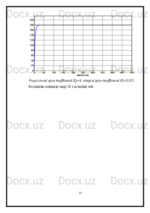 Proporsional qism  koeffitsienti K p = 4 ,   integral  qism  koeffitsienti Ki=0, 035.