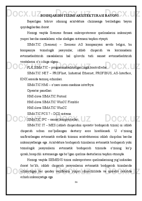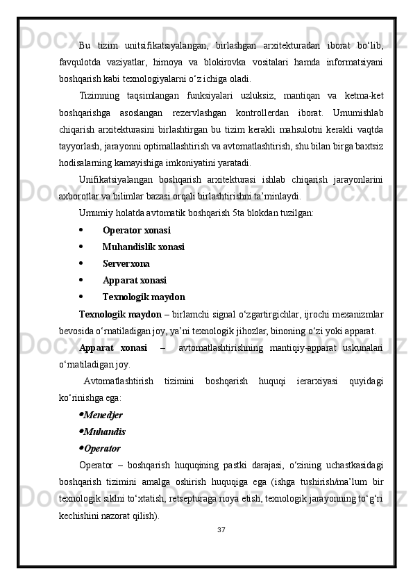 8Boshqarish tizimini arxitekturasi bayoni.......................................39